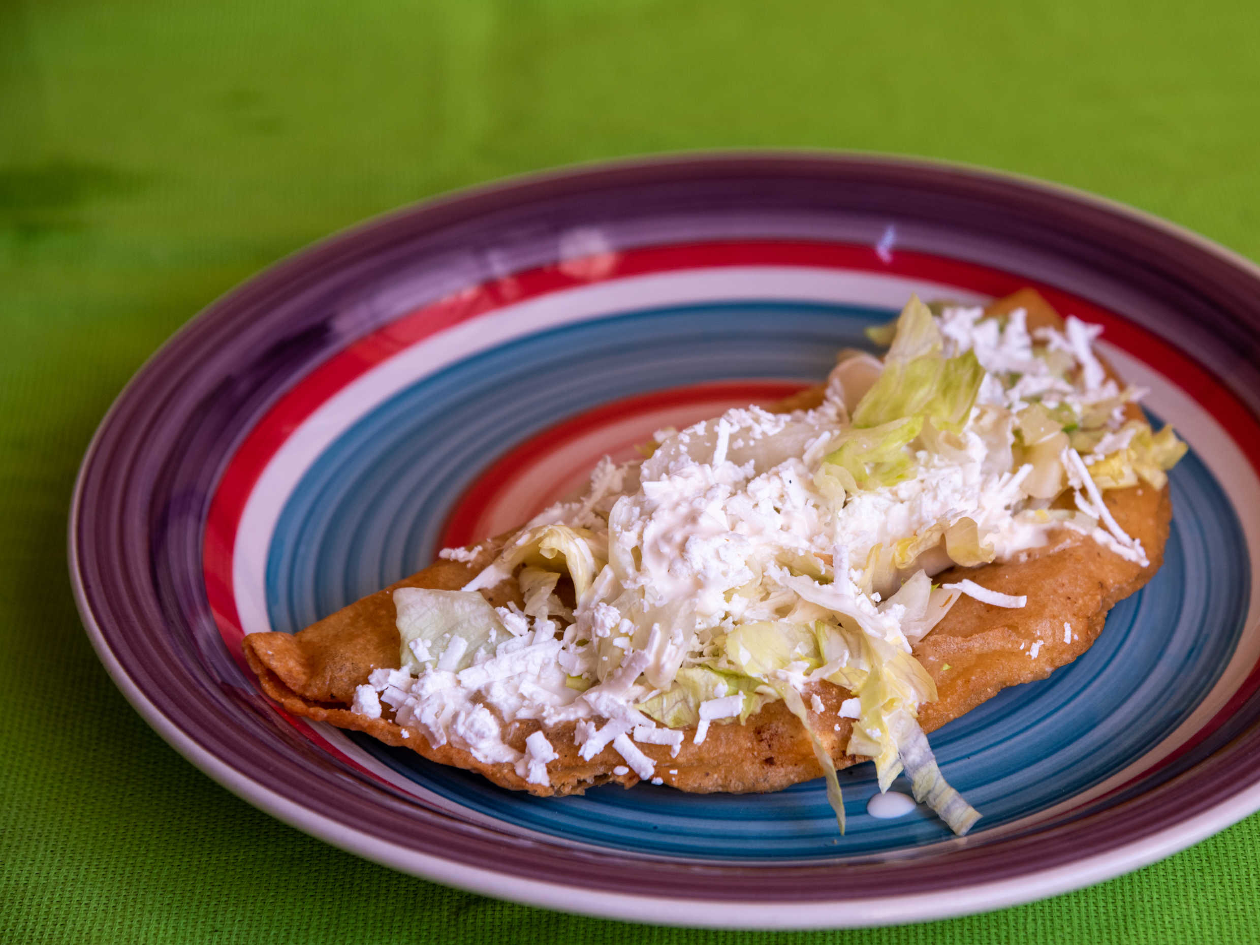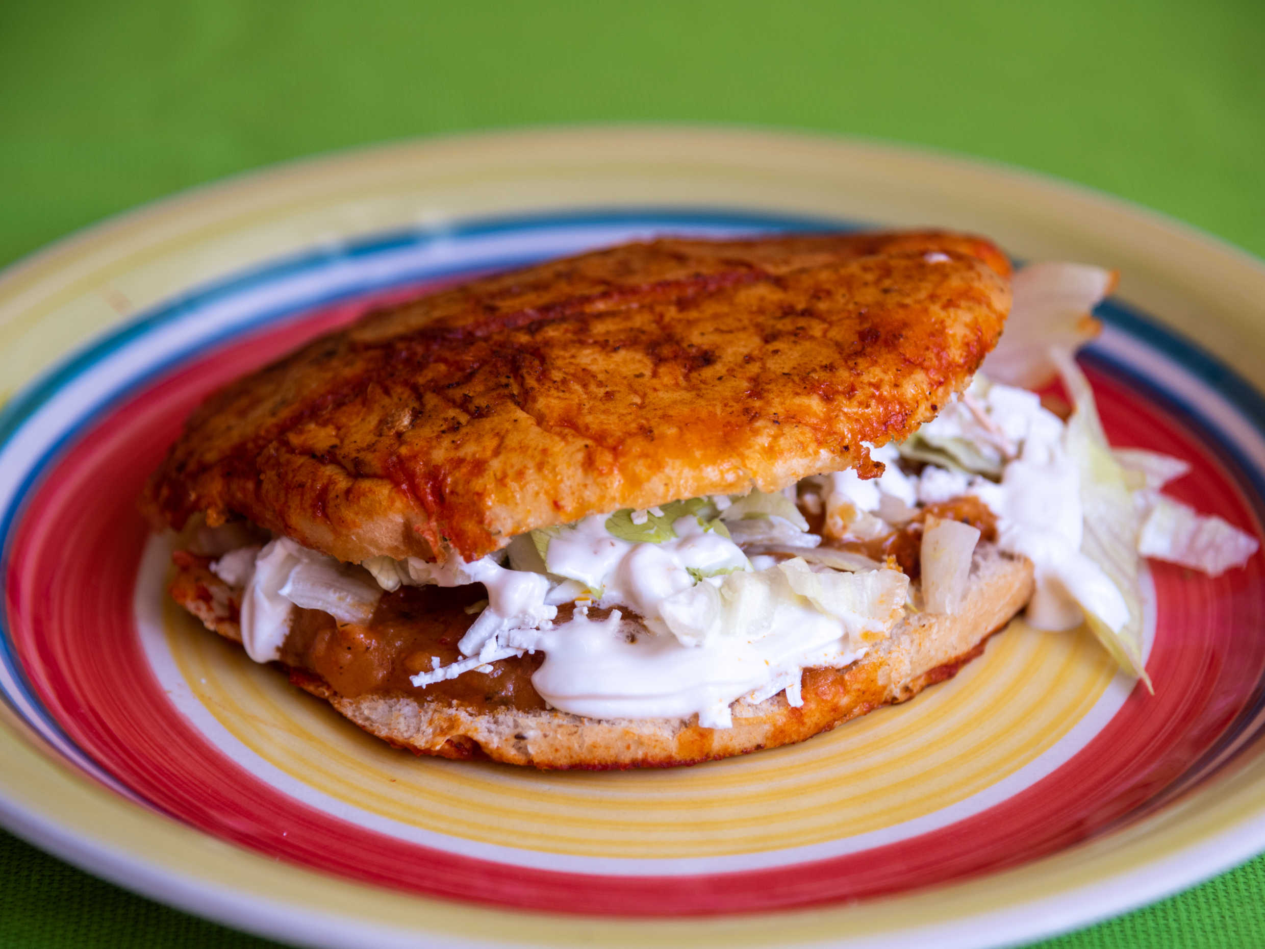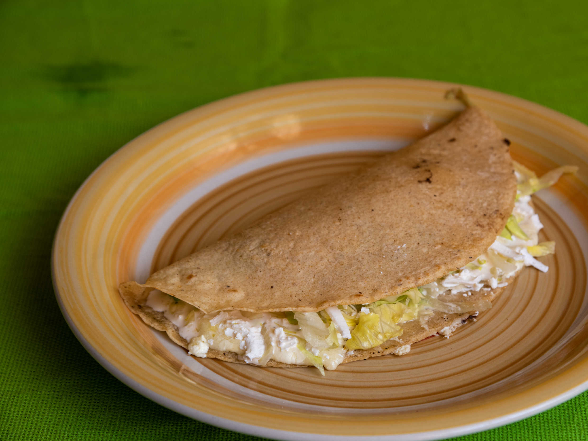 Tortilla echa a mano rellena de su guiso favorito con queso de hebra, acompañada de románita queso y crema (1pzs)