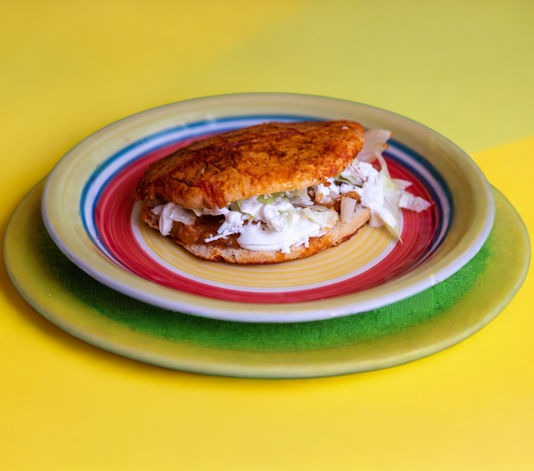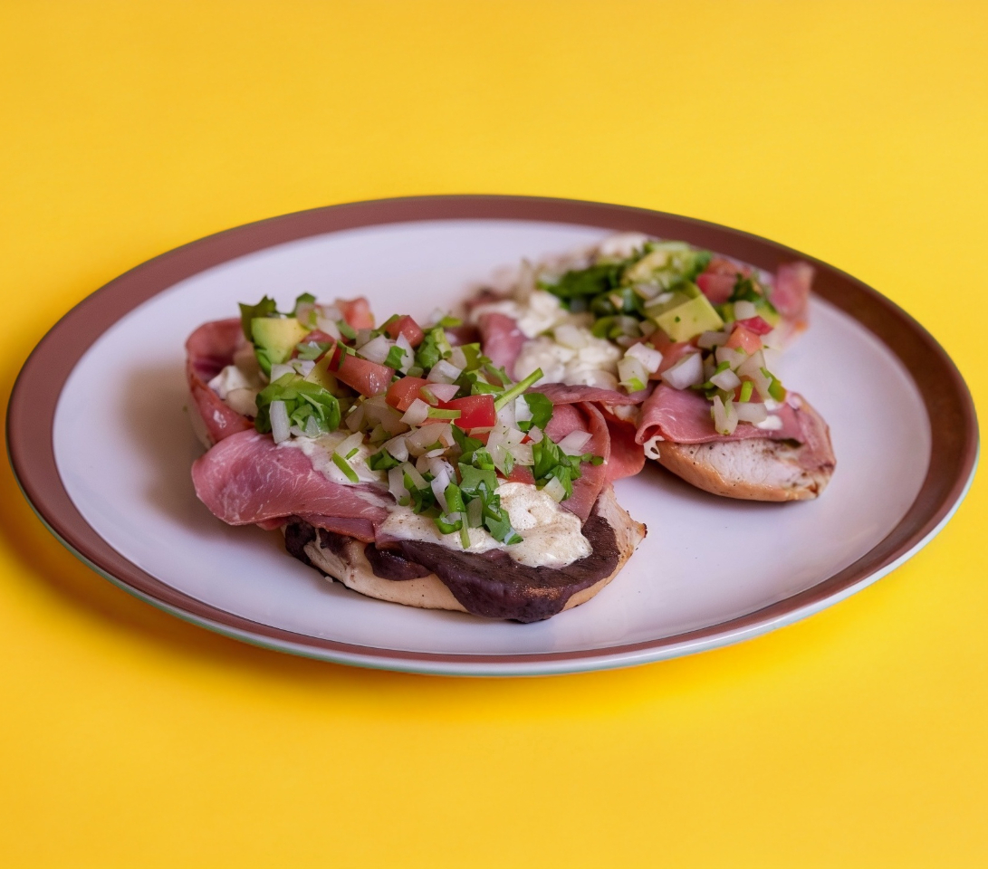 Con jamón y Queso, acompañados de pico de gallo