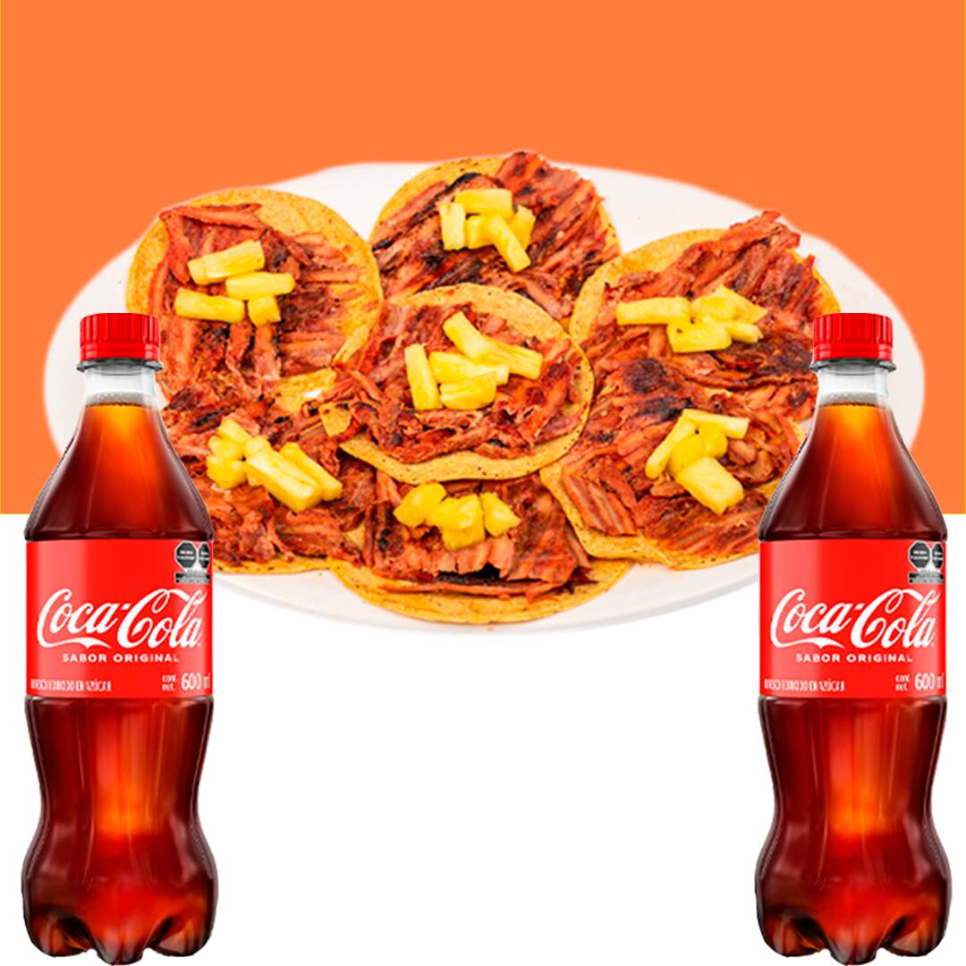 7 Tacos Pastor más 2 Coca Cola 600 Ml