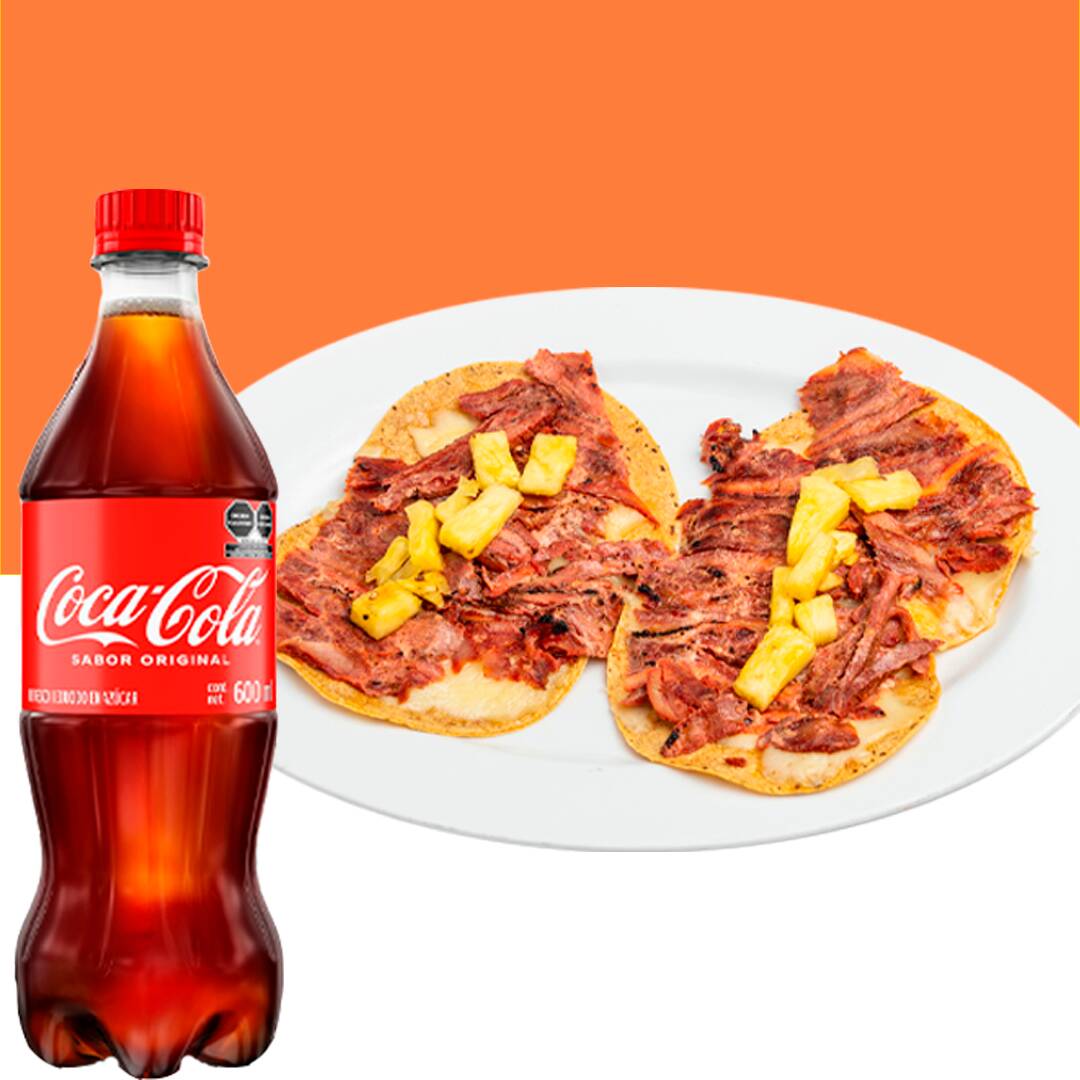 Dos gringas de pastor acompañadas con Coca Cola de 600 ml.