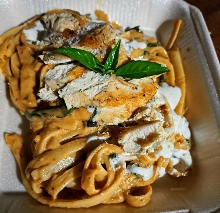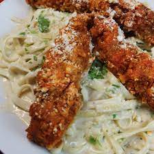 Pasta Alfredo con Tiras de Pollo.