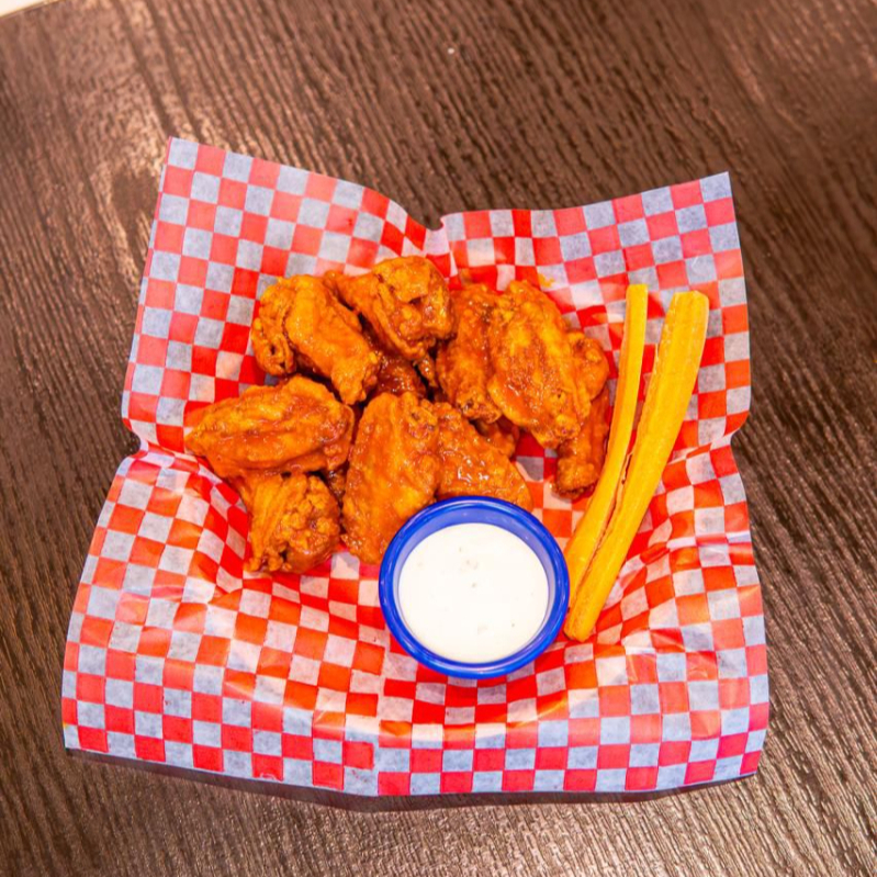 Alitas de pollo clásicas, fritas al punto y bañadas en nuestras salsas artesanales.