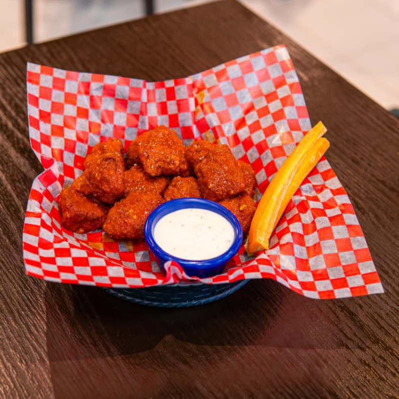 Medio kilo de boneless acompañados de papas francesas, gajo y 2 aderezos.