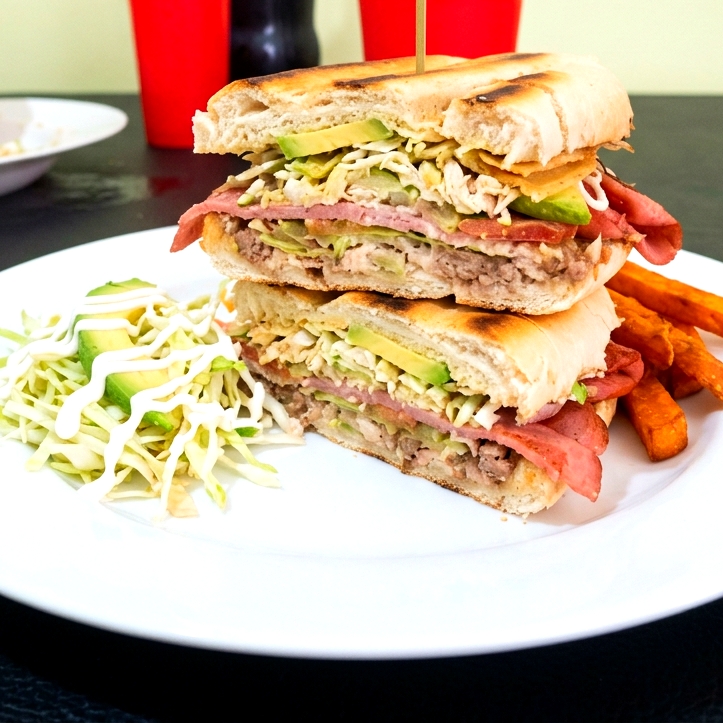 Telera con frijoles 2 tortillas con salsa verde, salchicha, jamón, queso, crema.