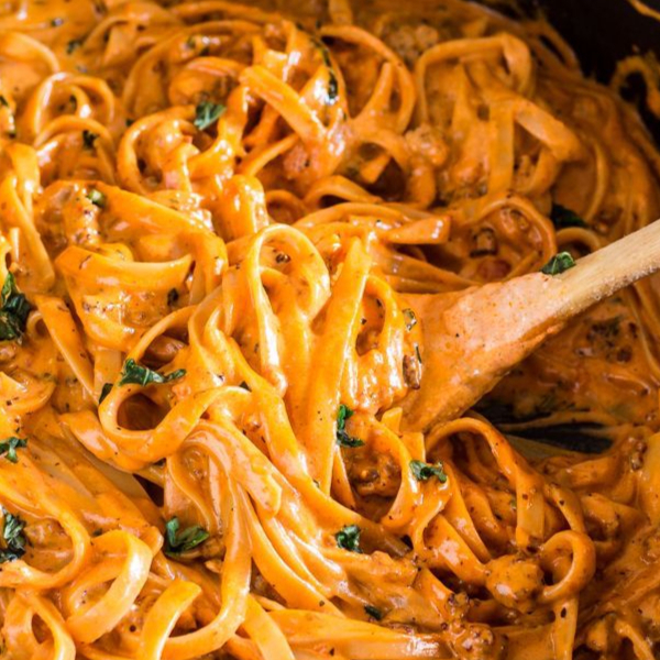 Fettuccine hecho a mano bañado en una salsa rosada (tomate y crema) con tocino y vodka, ligeramente picosa. Acompañada de una porción de pollo crispy, pan de ajo y aderezo