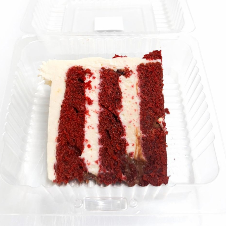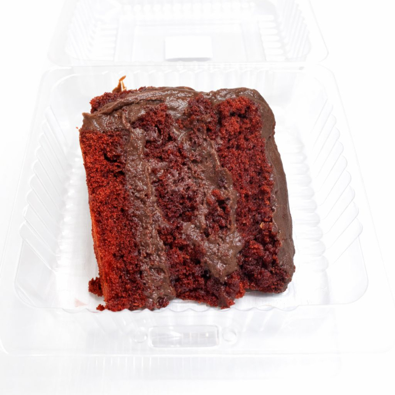 Rebanada de pastel red velvet con Foudge