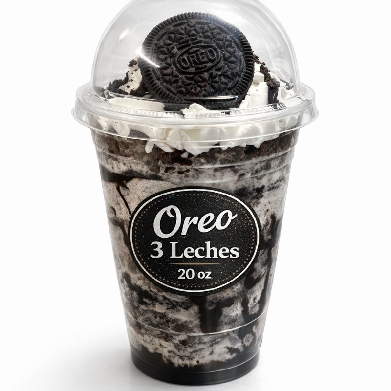 Vaso de Oreo, con Galleta Oreo y remojado de tres leches de 20 onzas