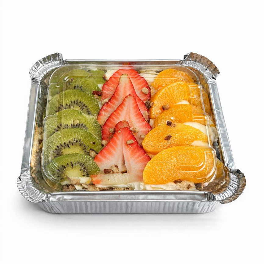 Mostachon con frutas Naturales, de durazno, kiwi y Fresa