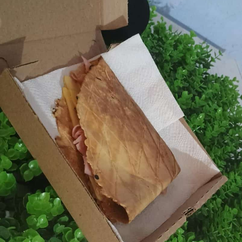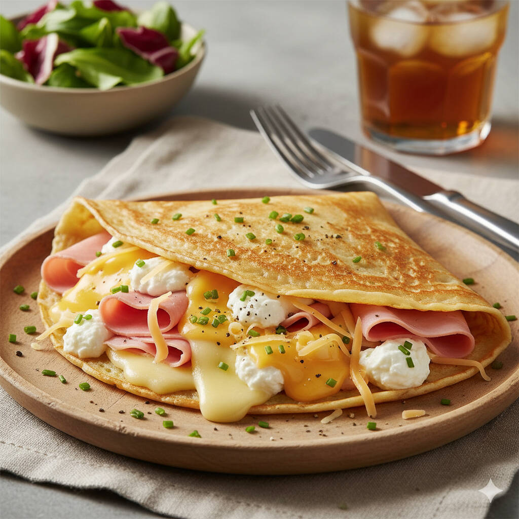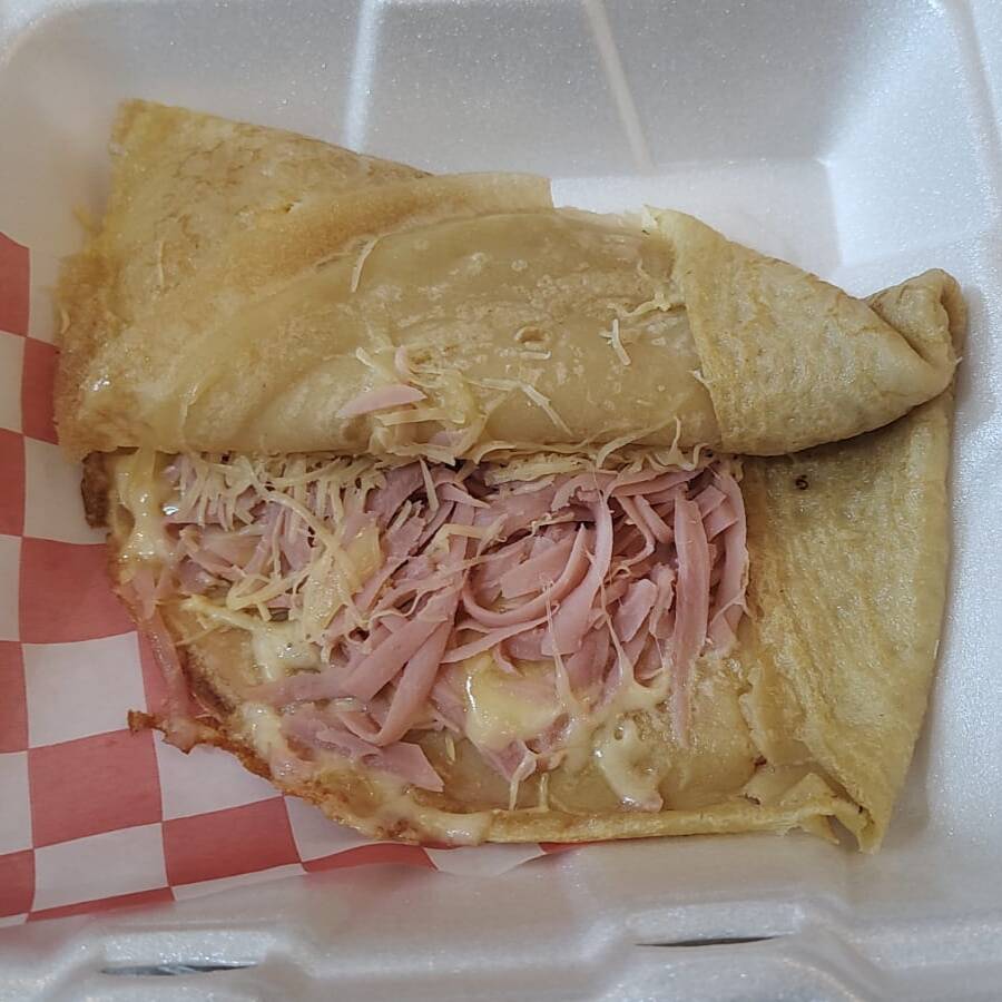 Deliciosa Crepa suave Rellena de 3 ingredientes Salados; Jamón, Queso manchego y queso de bola disfrutala