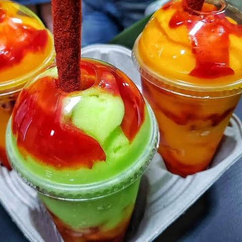 Delicioso 16 onzas de smottie de limon con chamoy acompañado de su palito de chile 🥭