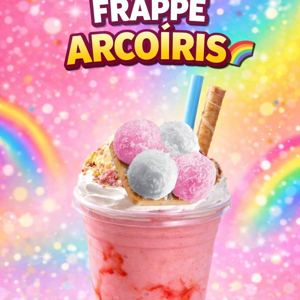 Frappé cremoso con trozos de galleta arcoíris 🌈, crema batida y topping crujiente. Dulce, colorido y súper antojable. Elige entre: leche entera, deslactosada o almendras Shot de café a tu elección