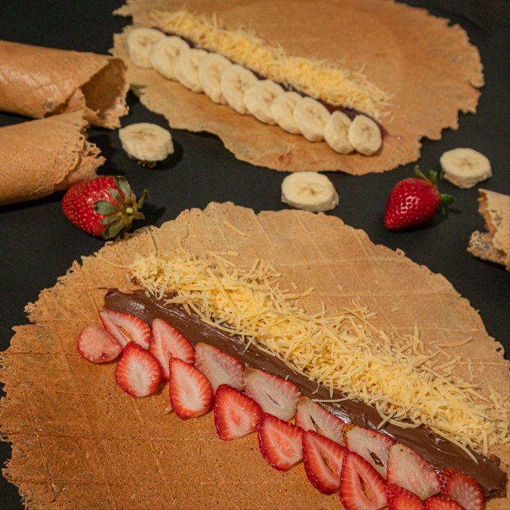 En forma de crepa pero con el crujiente sabor de la marquesita, Rellena de 2 ingredientes a tu elección. Receta original, sabor incomparable