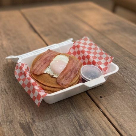 El rey de los desayunos: tres pisos de hotcakes servidos con un huevo estrellado a la perfección y tiras de tocino crujiente. Una combinación sustanciosa, clásica y llena de sabor en cada bocado.