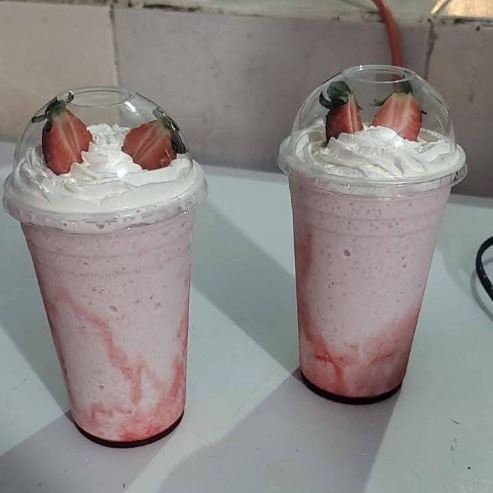Deliciosas bebidas de 16 onzas a base de Leche + fresas naturales. Un nutritivo licuado