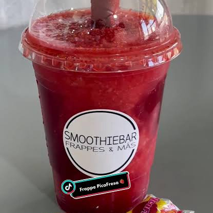 Delicioso 16 onzas de smottie de fresa con chamoy acompañado de su palito de chile 🥭