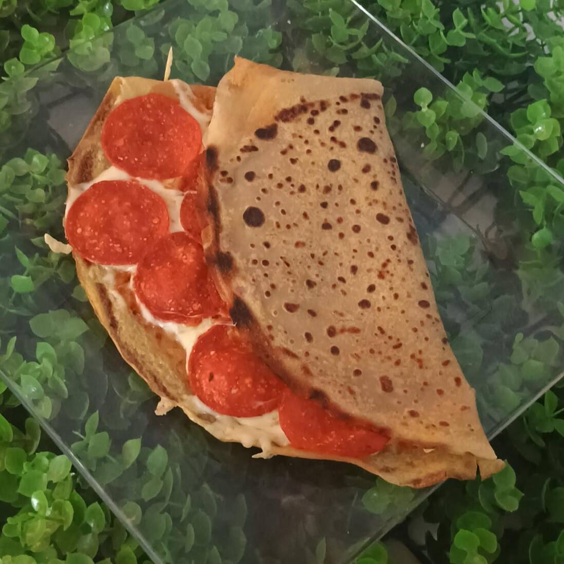 Deliciosa Crepa salada Rellena de Peperoni y queso manchego fundido.