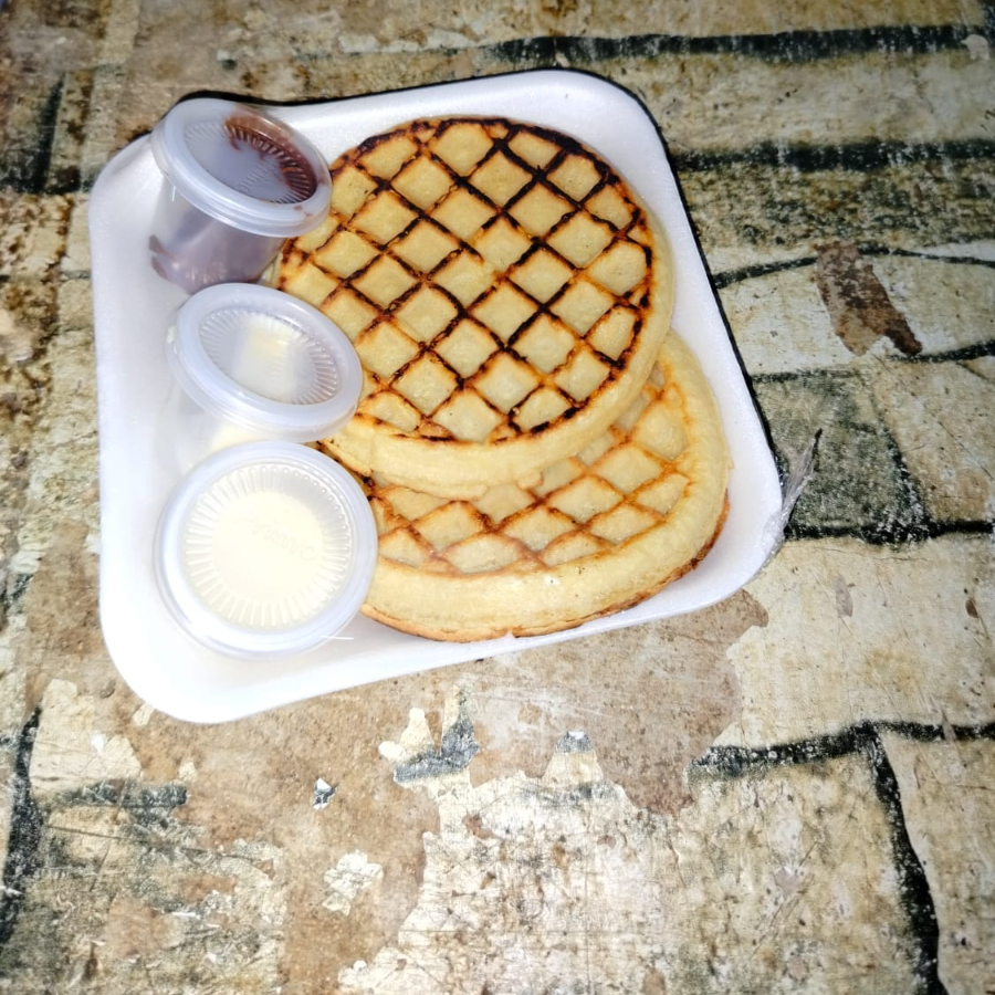 Jamón, pastel pimiento, queso gratinado, lechuga, tomate y cebolla, incluye papas.