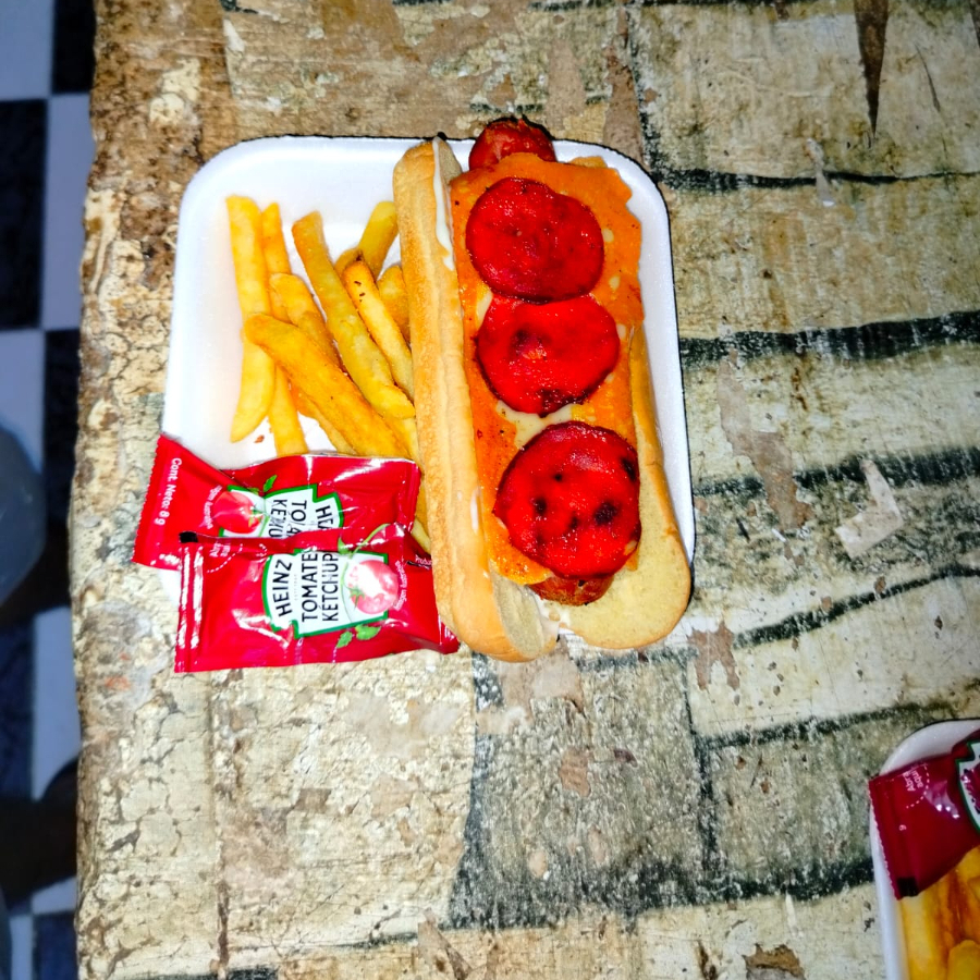 Papas fritas con salchicha.