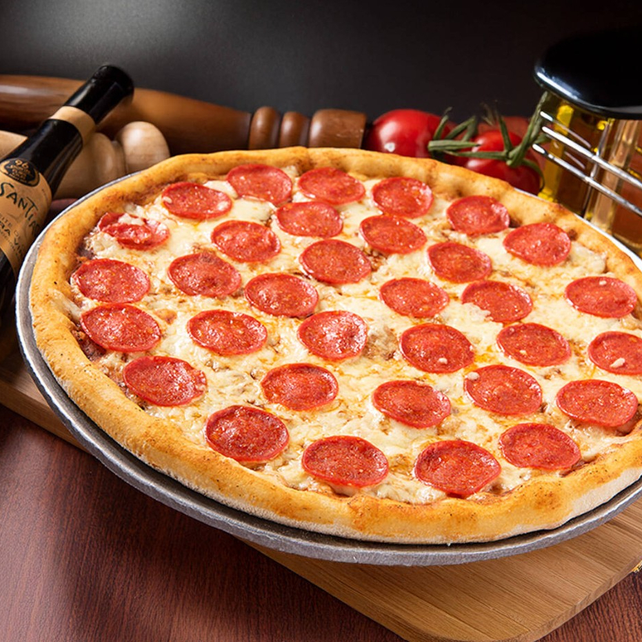 Tradicional pizza de pepperoni. Elige el tamaño de tu preferencia. (Ind, Ch, M, G).