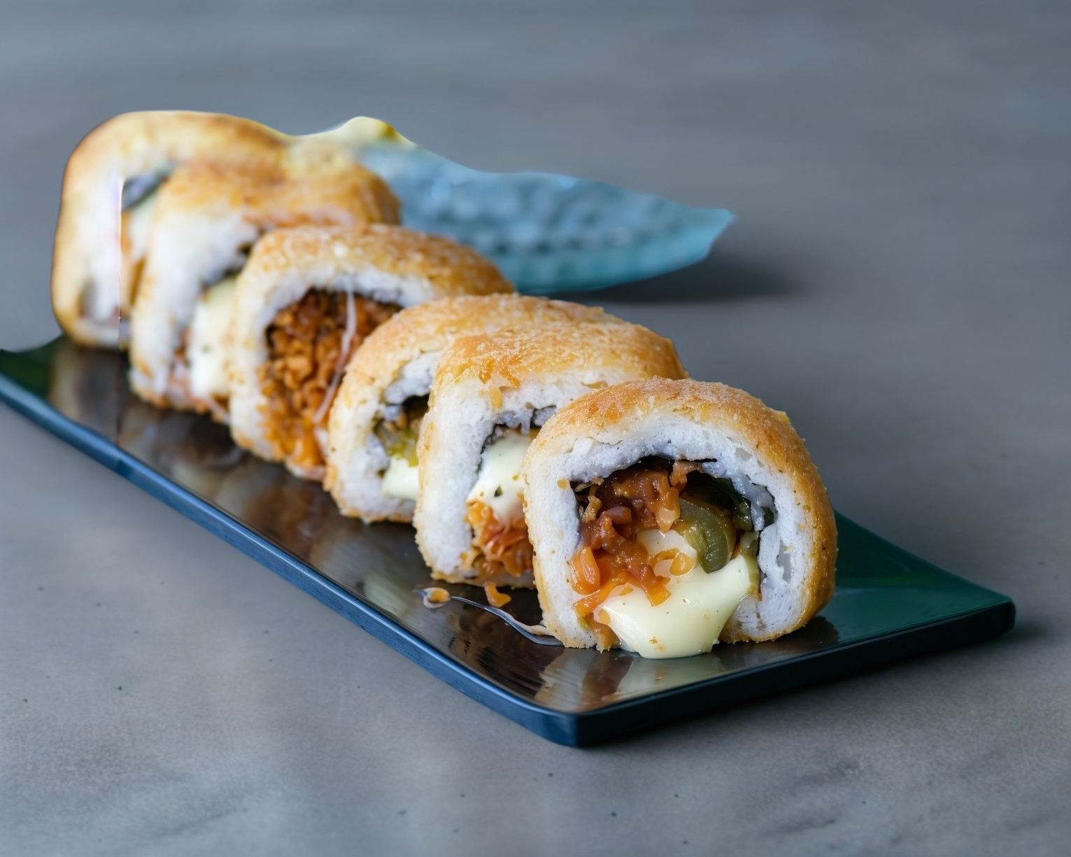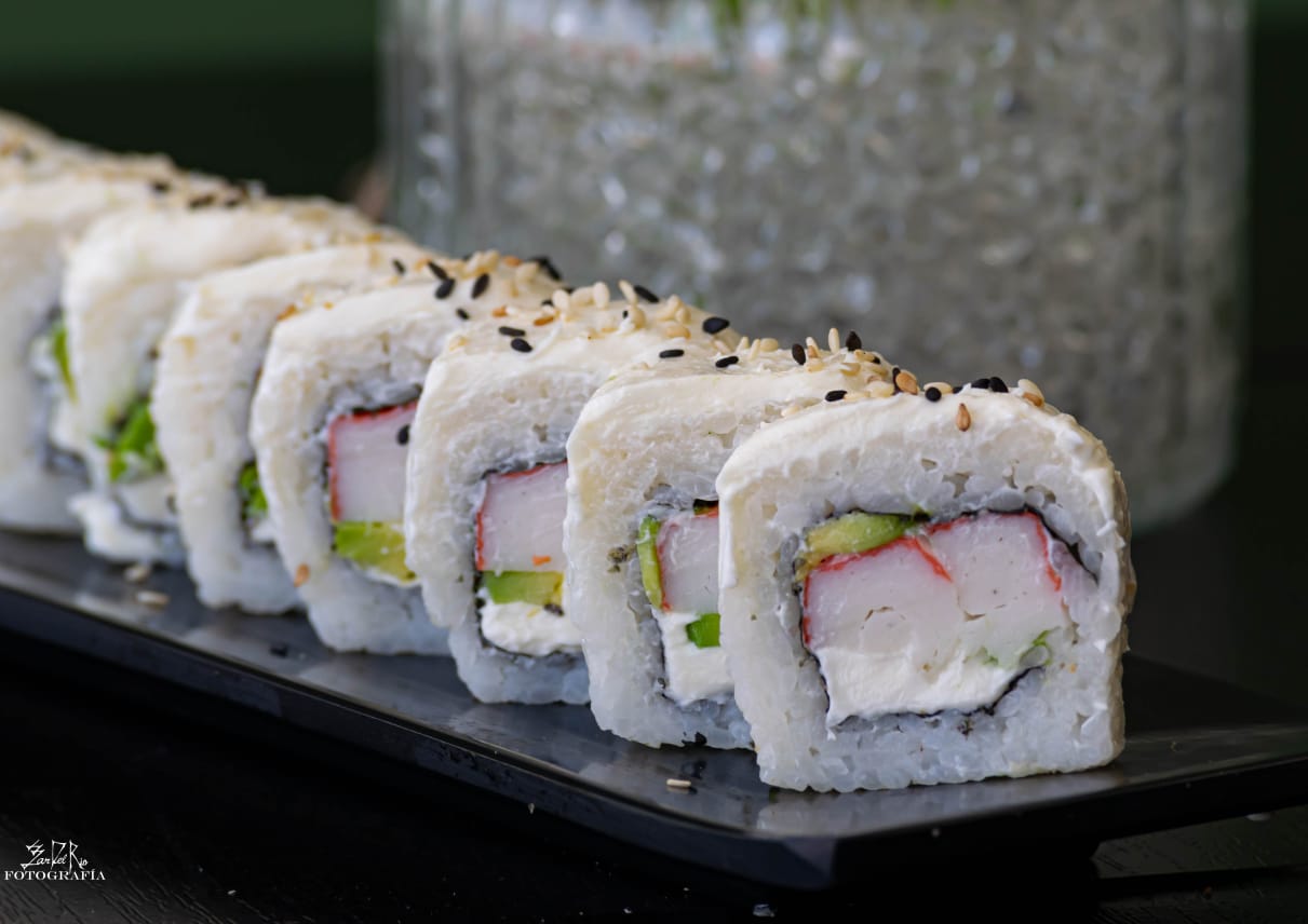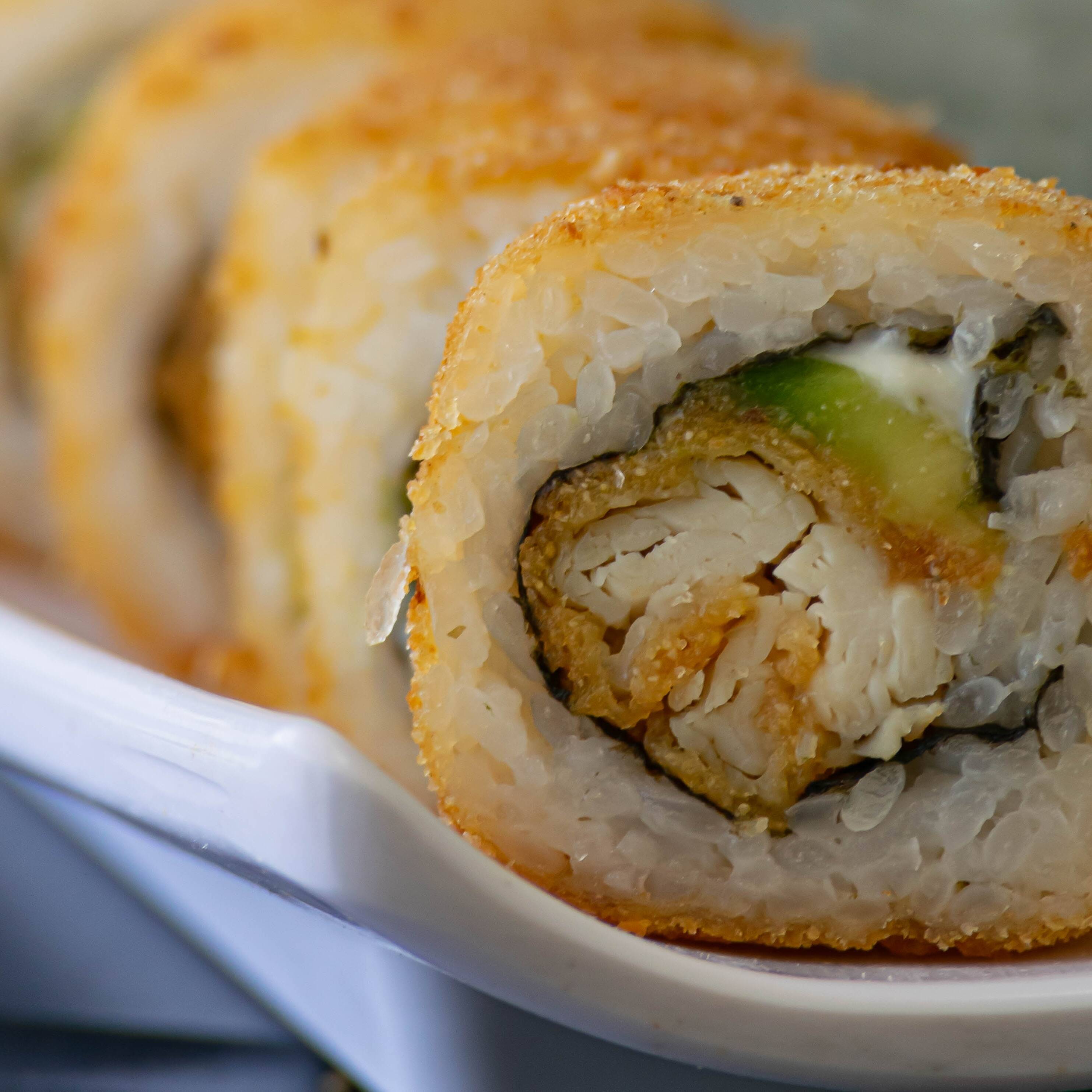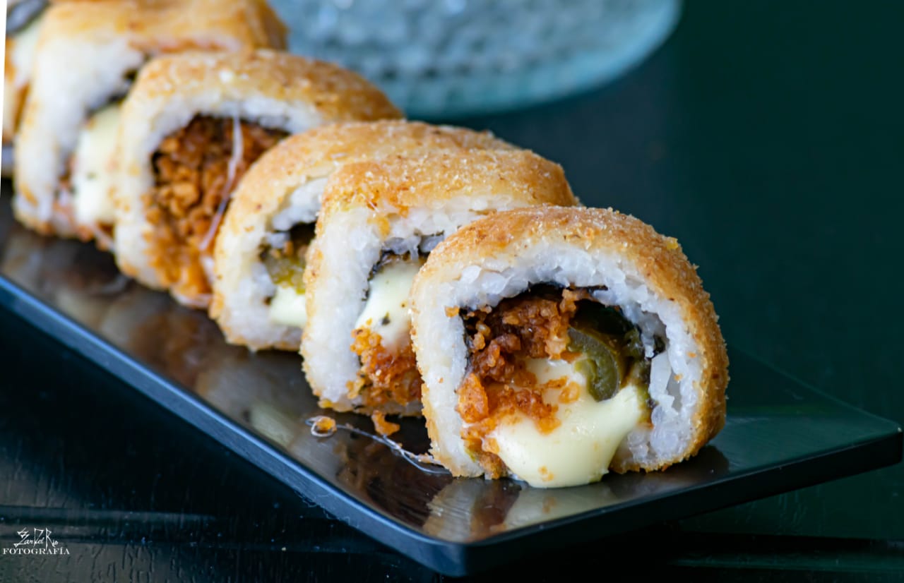 Por dentro, pollo, camarón o surimi. Por fuera, Philadelphia y ajonjolí.