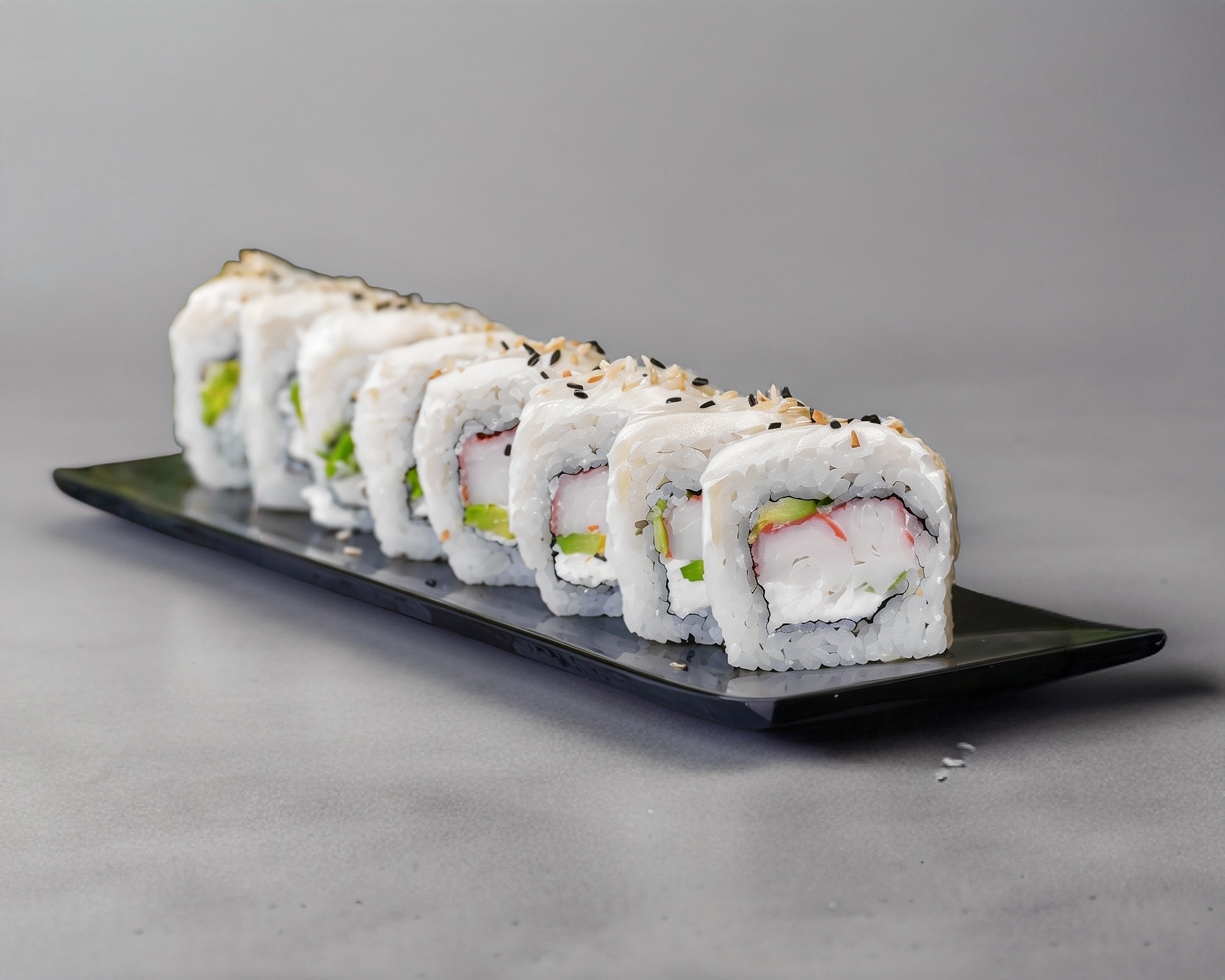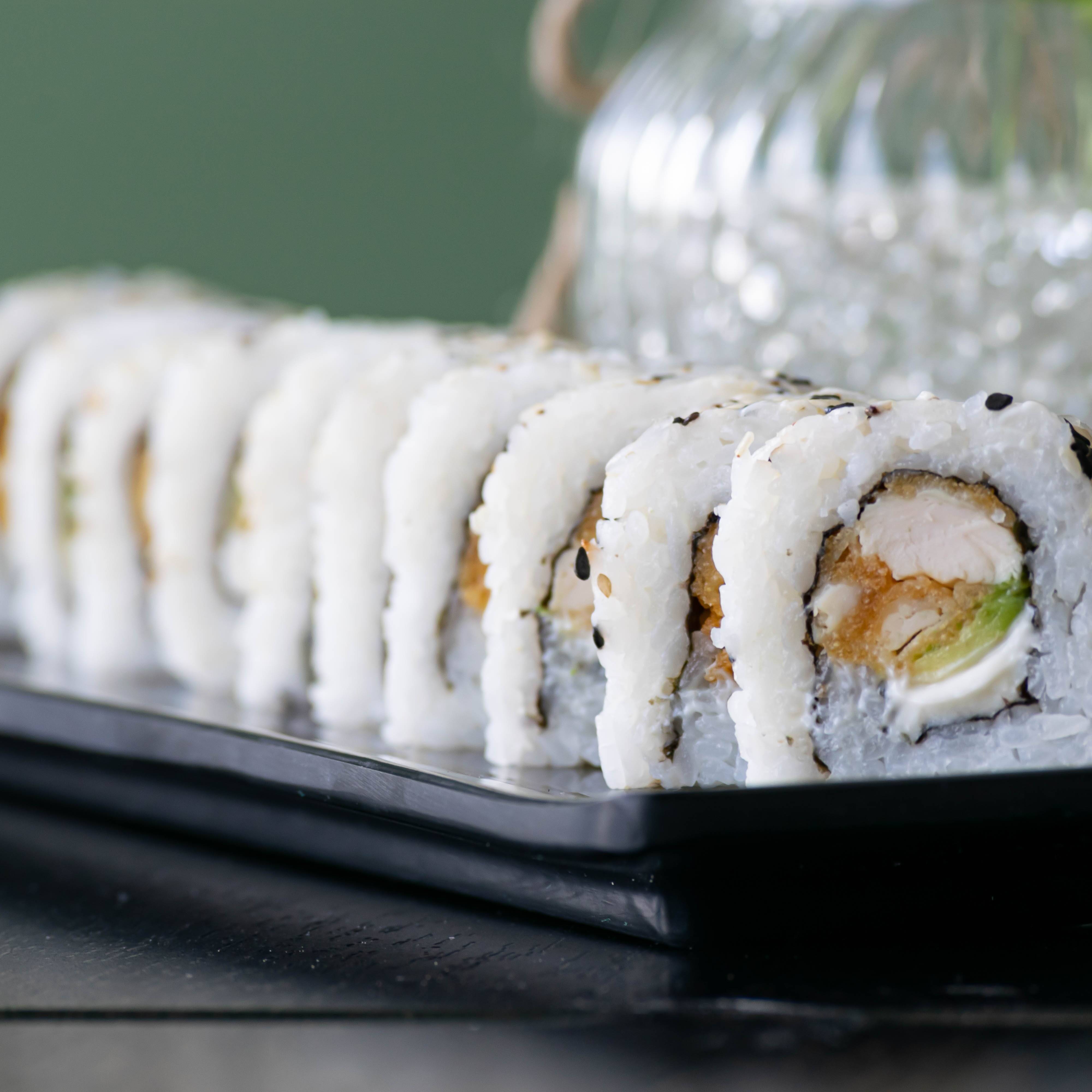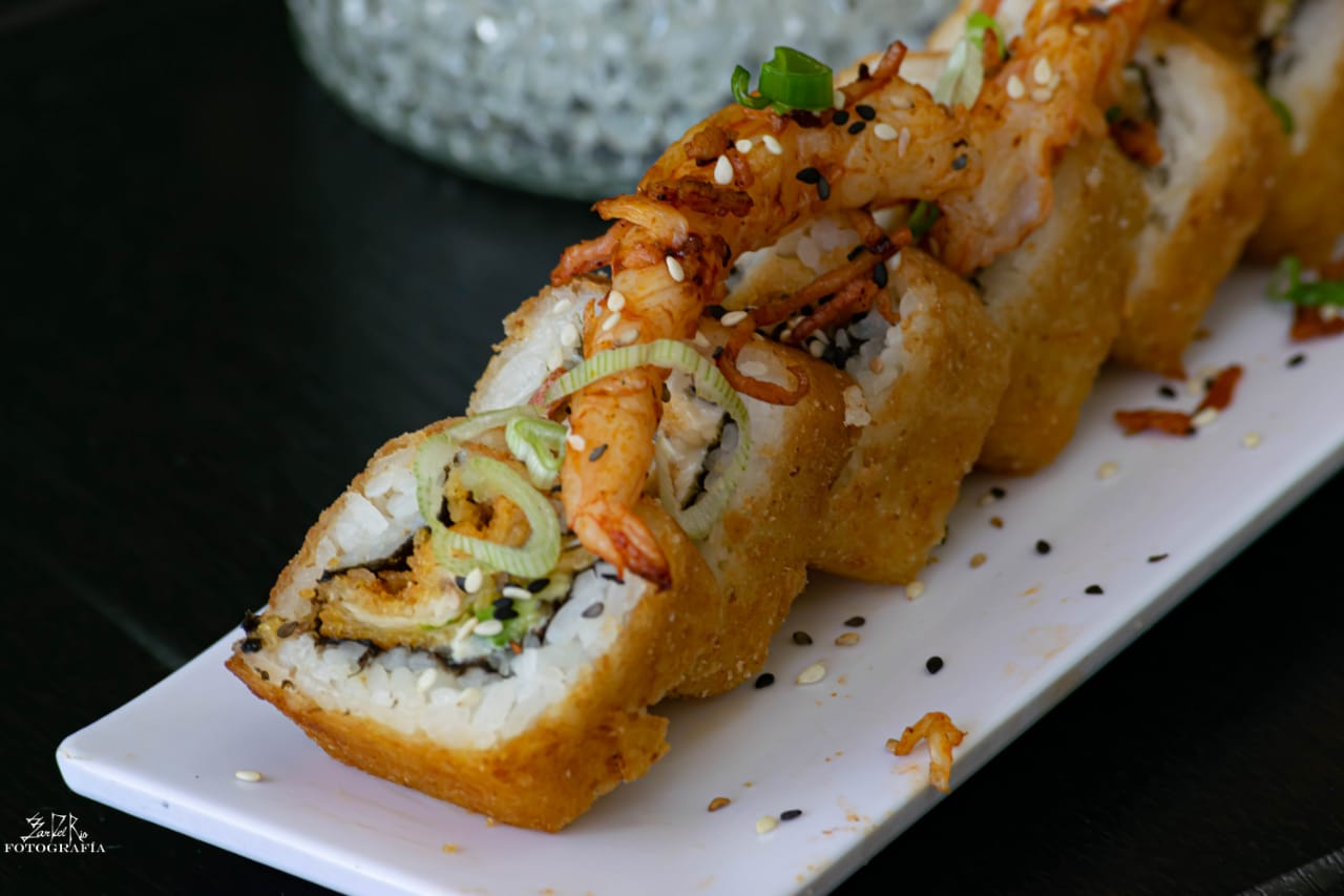 Por dentro, pollo, camarón o surimi. Por fuera, Philadelphia y ajonjolí.