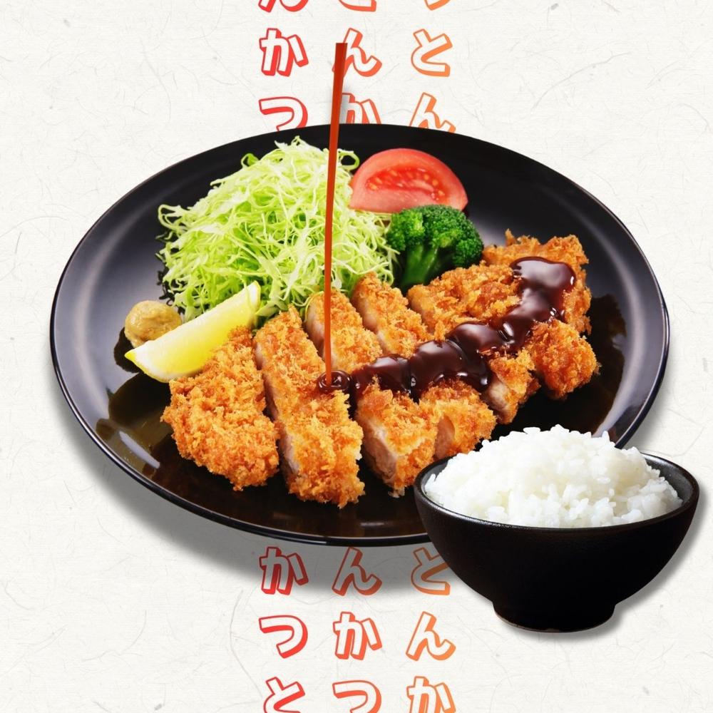 Cerdo empanizado y crujiente, dorado al momento y lleno de sabor, acompañado de aderezo k-pop, ensalada y arroz al vapor.