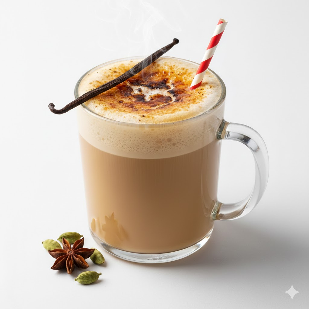 Bebida cremosa con vainilla y especias chai, coronada con un toque brulee que aporta un sabor cálido y dulce