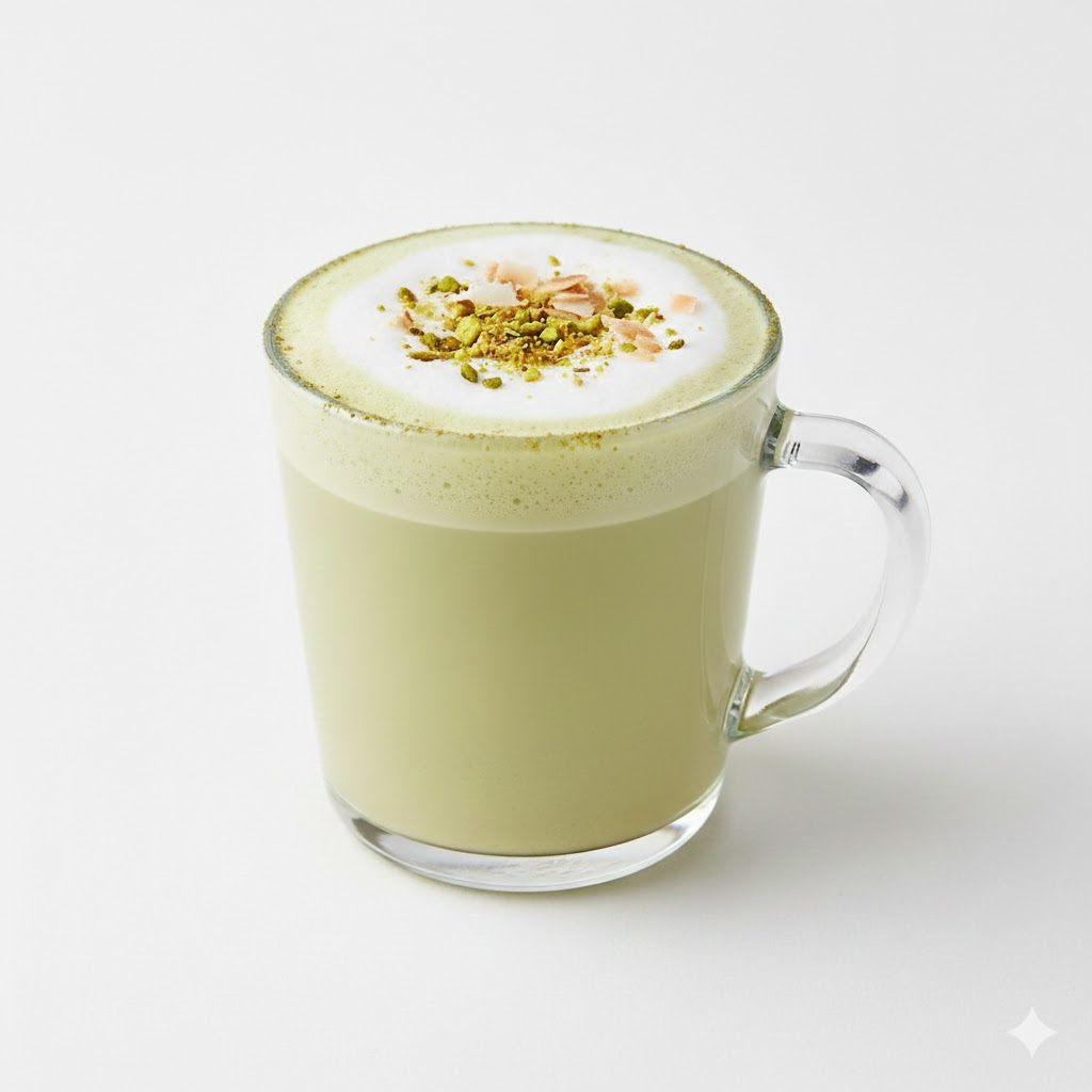 Té suave con sabor a pistache, coronado con una espuma cremosa que realza su sabor y textura.
