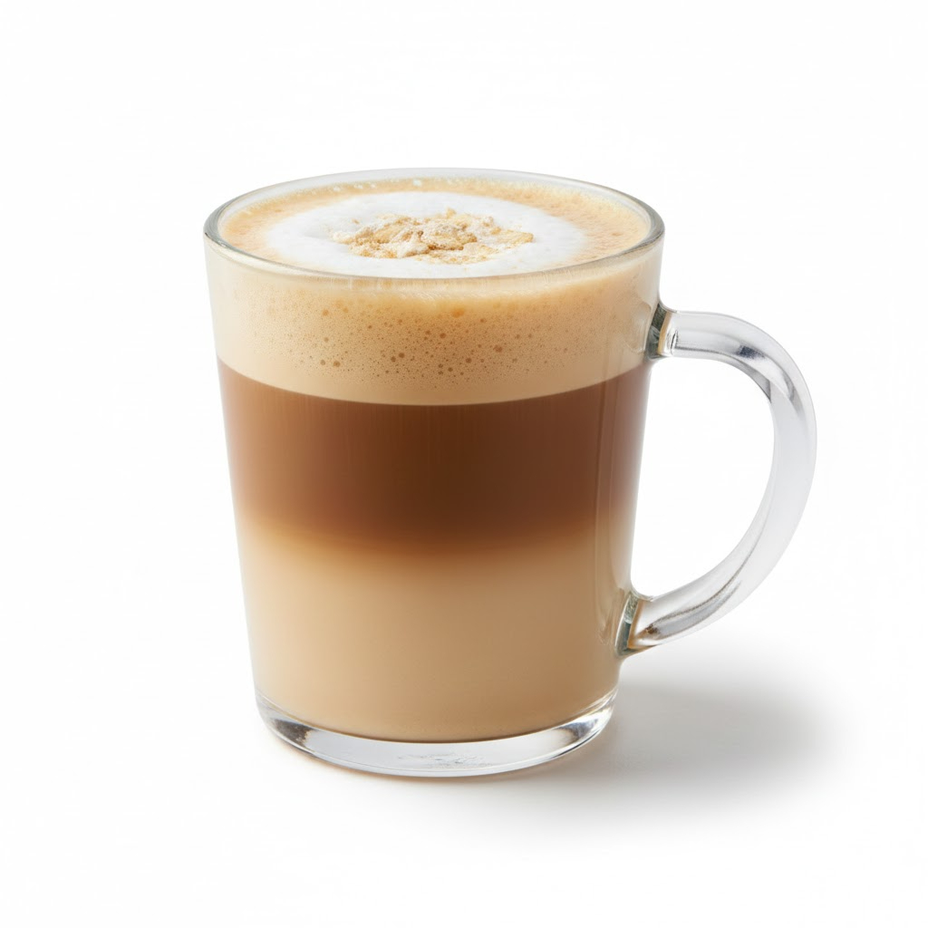 Café espresso combinado con leche de avena, de textura ligera y sabor balanceado, ideal para quienes buscan una opción vegetal.