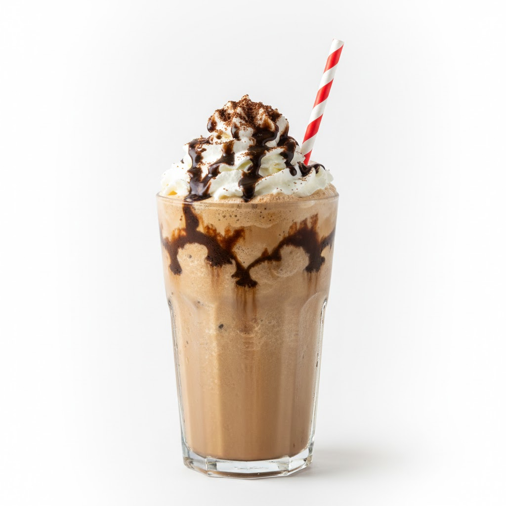Bebida frappé de café con chocolate, cremosa y refrescante, de sabor intenso y equilibrado.