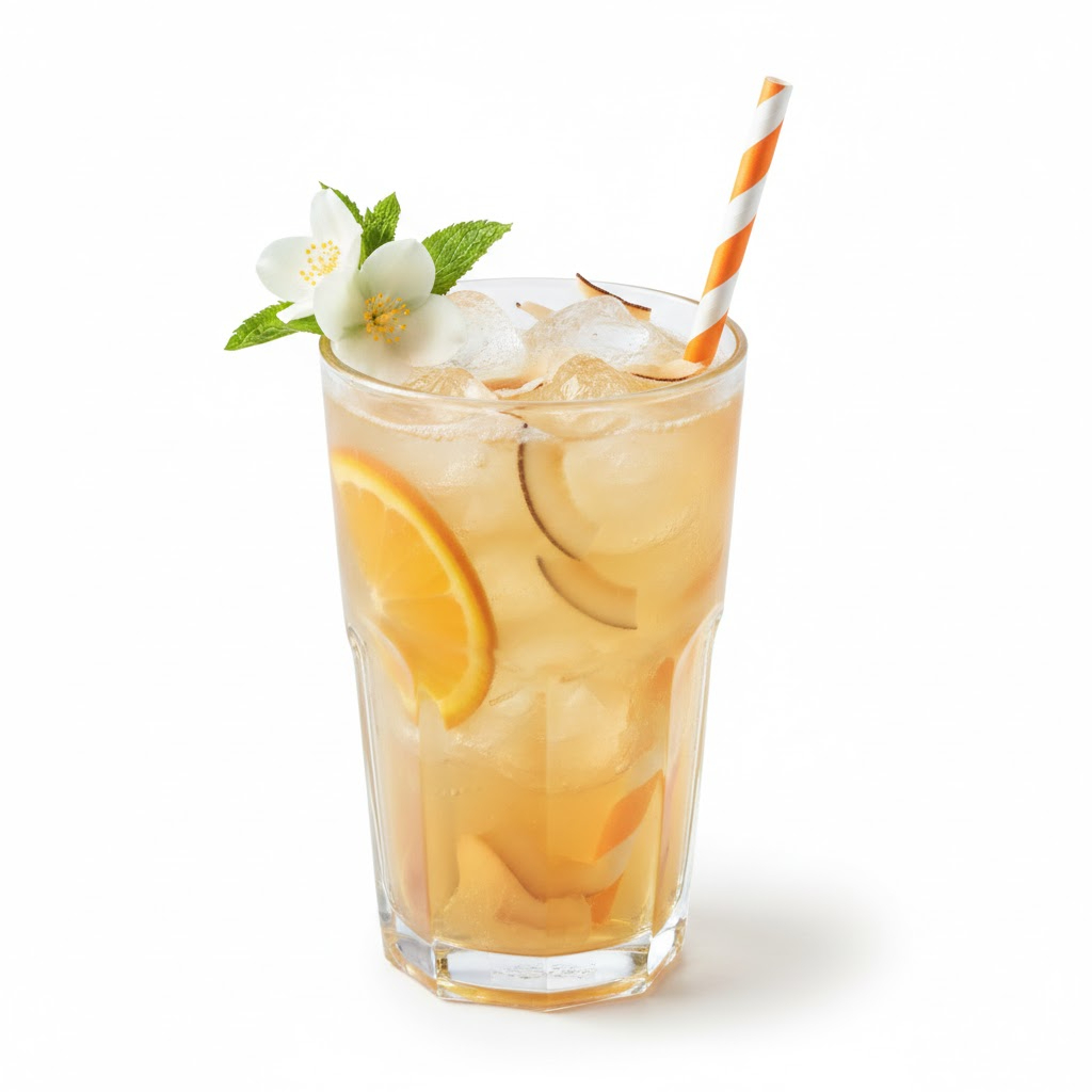 Té de jazmín aromático con naranja y un toque de coco, refrescante, floral y tropical.