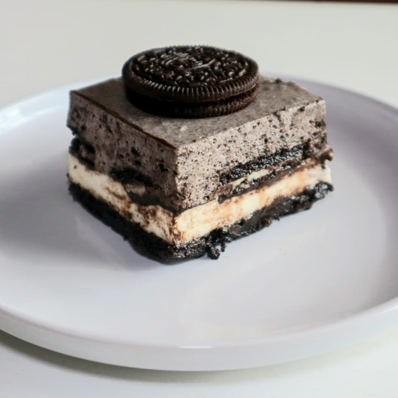Delicioso y cremoso, preparado con suave queso crema, galletas oreo trituradas en cada capa y base crujiente. Perfecto para endulzar tu día.