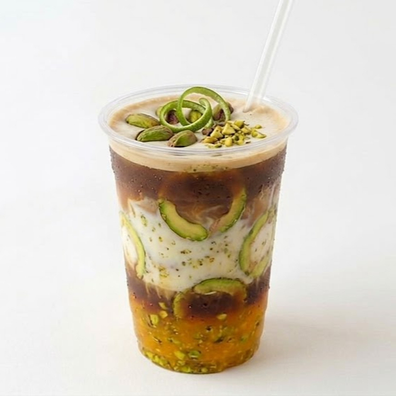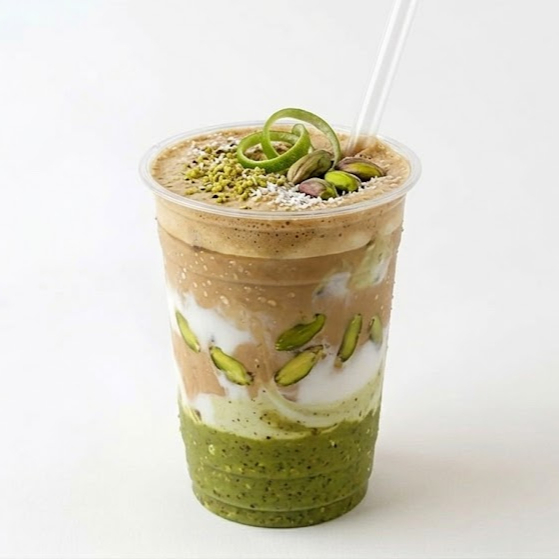 Latte frío con un balance perfecto entre el café y la cremosidad del pistache. coronado con una capa de espuma ligera que realza su sabor único. ideal para los amantes del café con un giro diferente.