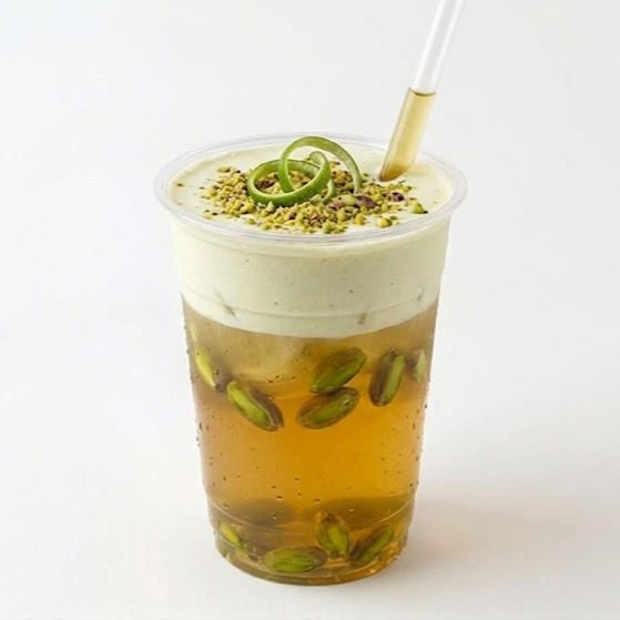 Té suave con sabor a pistache, coronado con una espuma cremosa que realza su sabor y textura.