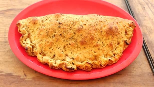 Masa de pizza en forma de empanada gigante de 3 ingredientes a elegir.