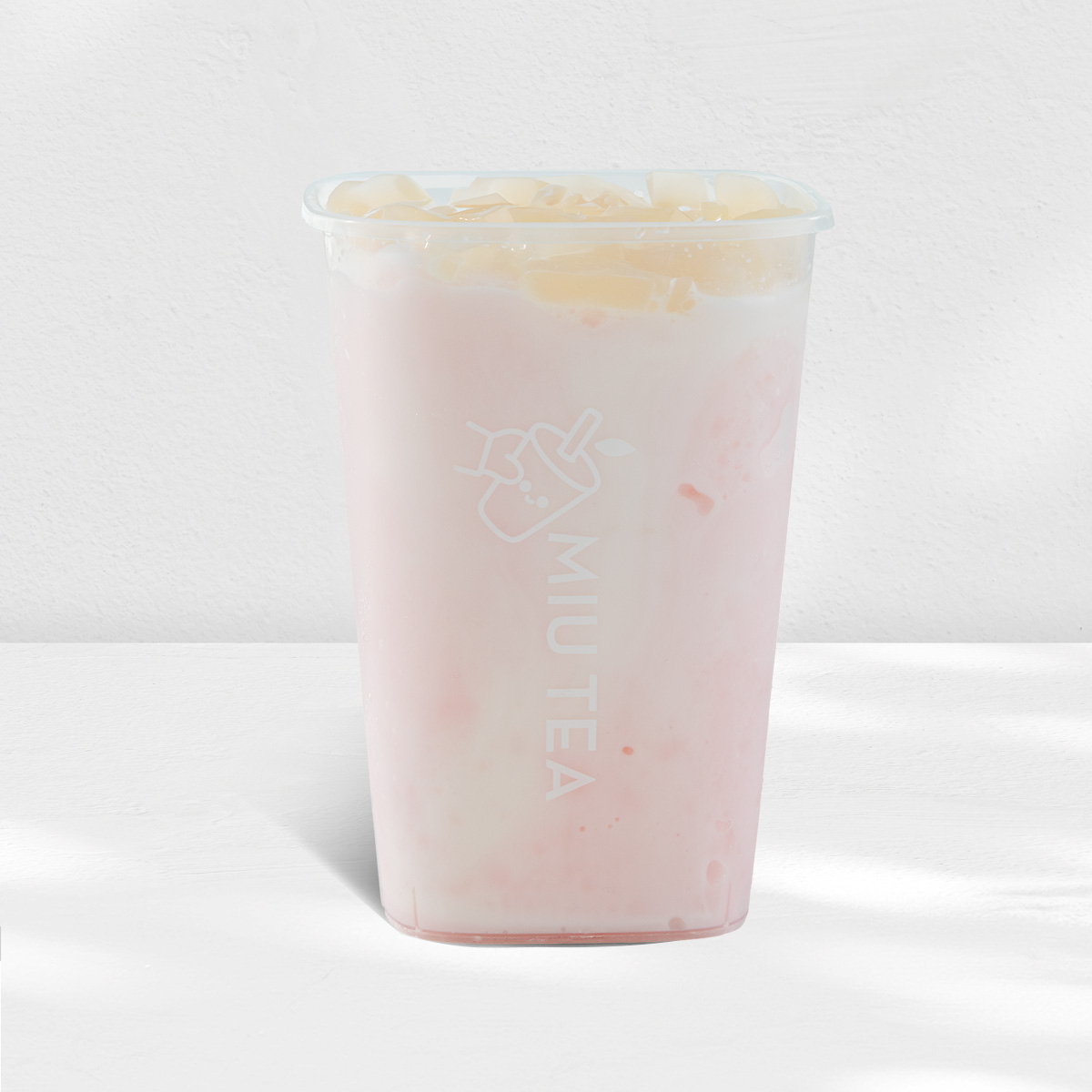 Mezcla de té, polvo de fresa y leche cremosa. un toque de dulzura frutal que enamora.