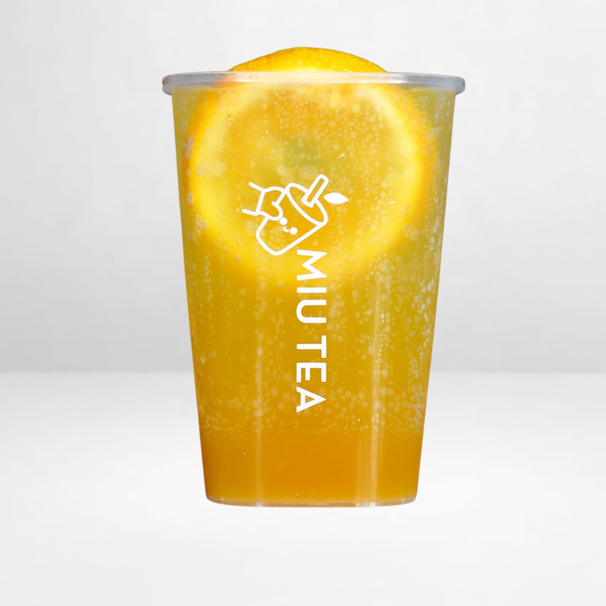 Bebida refrescante y burbujeante, a base de agua mineral natural, té de tu elección y jugó de naranja natural y fresca.