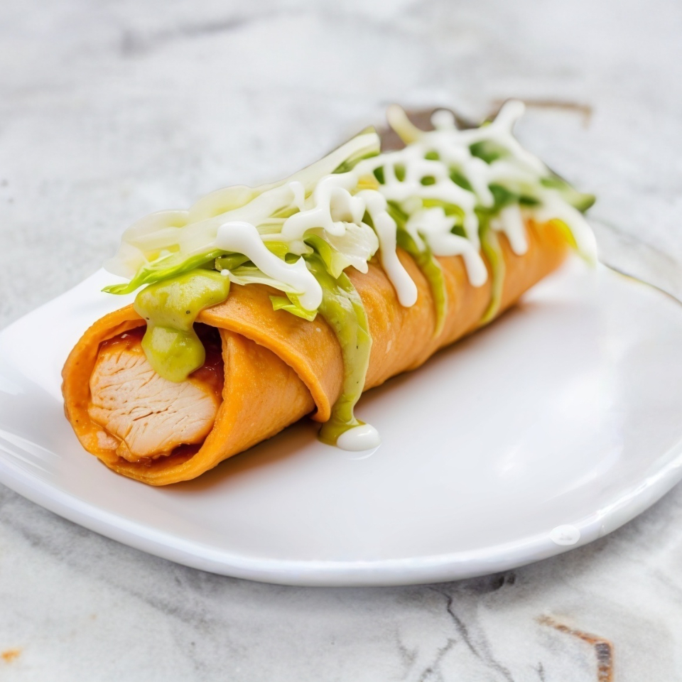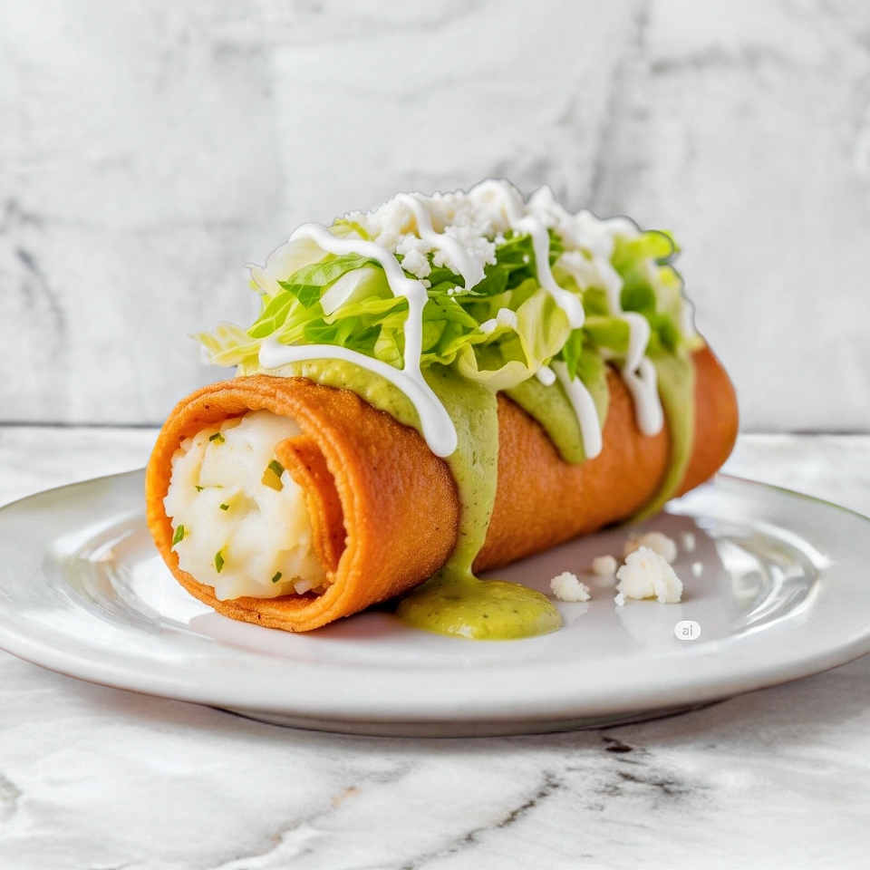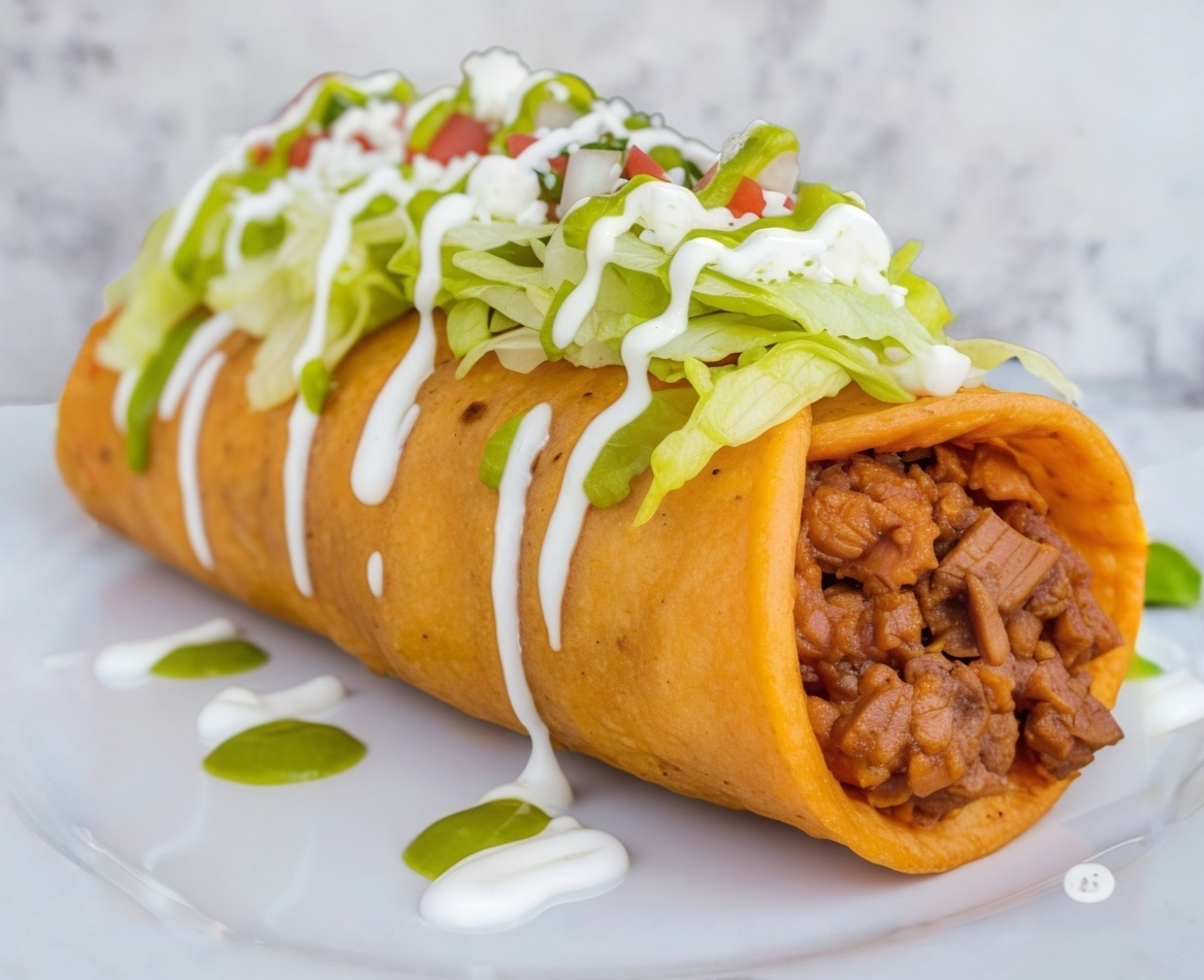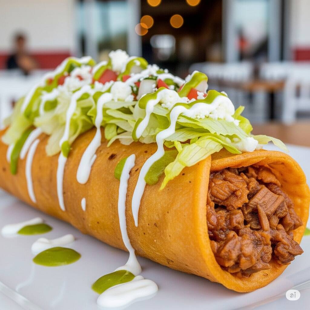 Tortilla de maíz doble con carne de birria fritas y bañadas en nuestro mole especial Mr. Carnero.