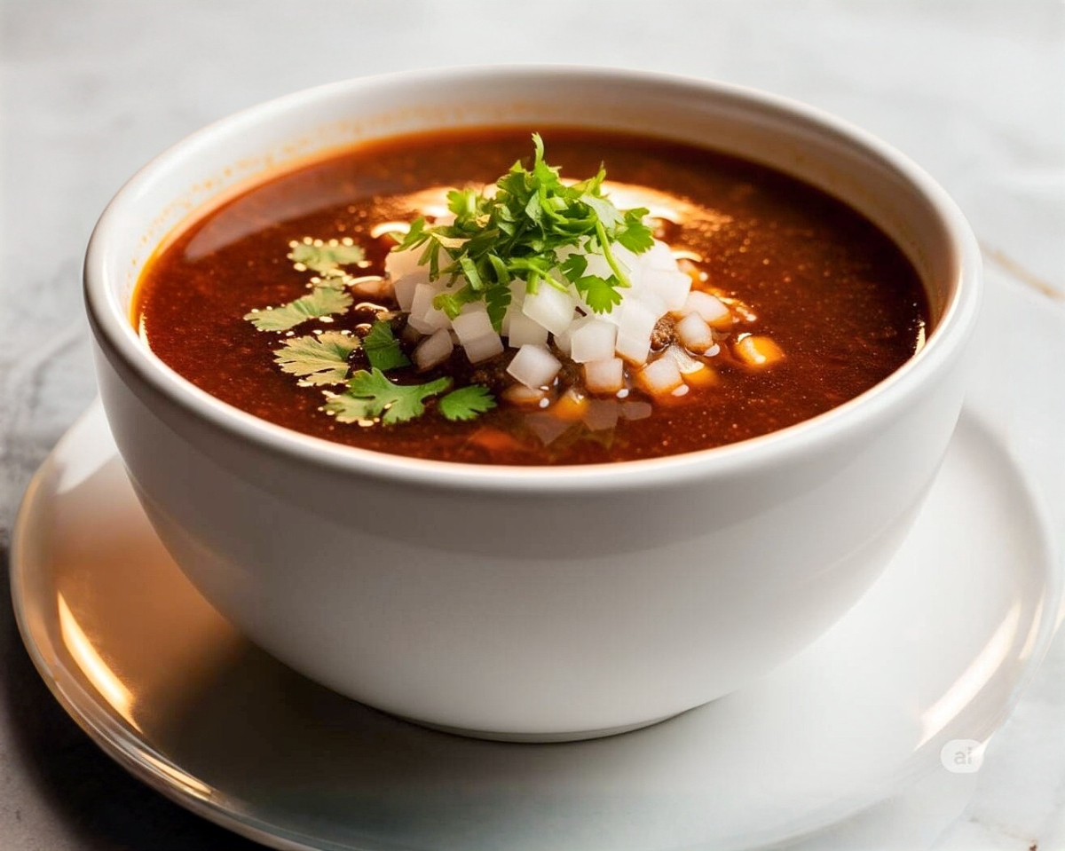 Nuestro delicioso consomé de birria sin carne en porción individual (150 ml)