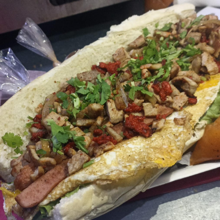 La más completa: carne premium de arrachera, jamón, queso, tocineta, chorizo español y una porción de papas fritas.