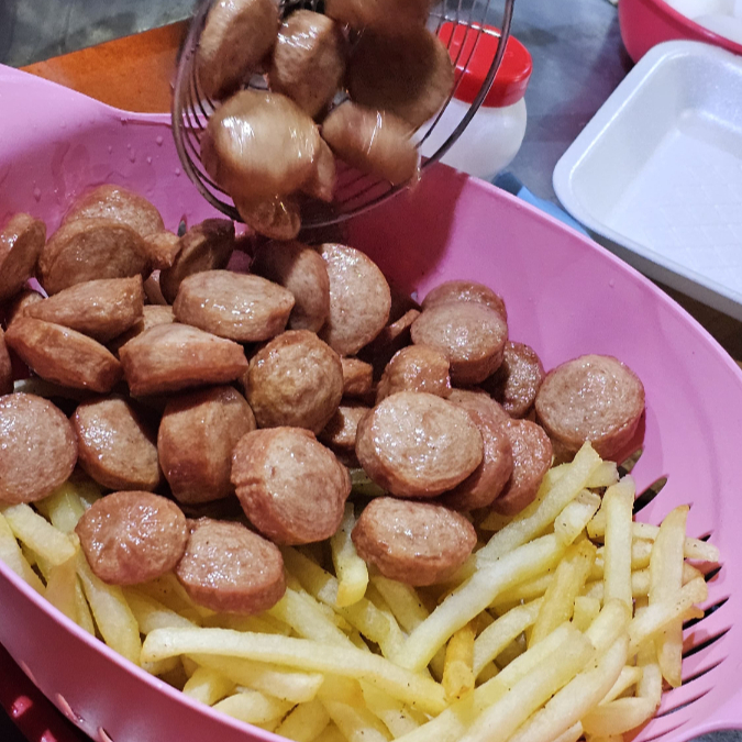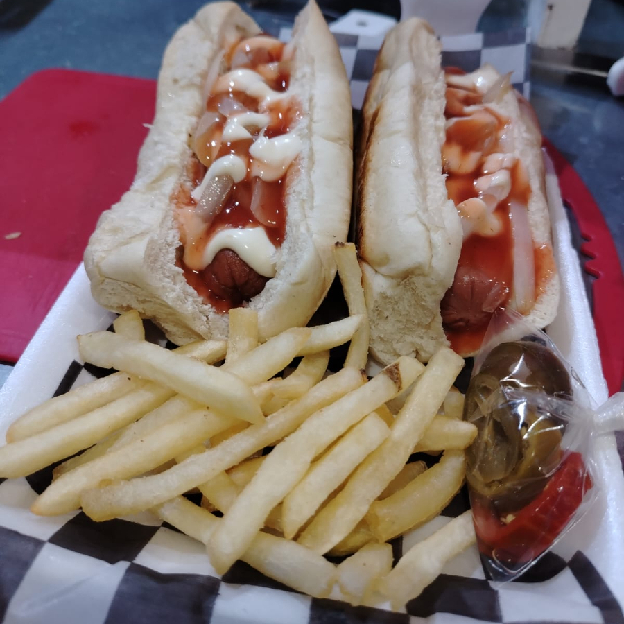 Clásicas papas a la francesa, puedes elegir si las quieres solas o acompañadas de salchicha frita.