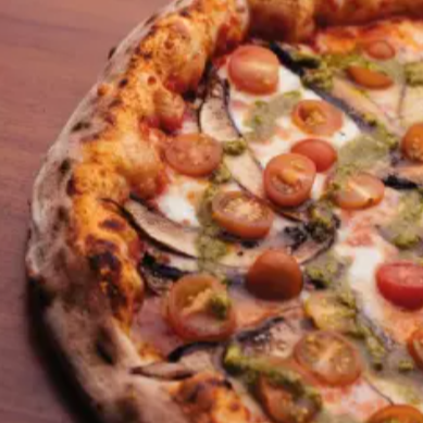 Queso mozzarella, portobello, tomate cherry, salsa pesto y salsa pomodoro.