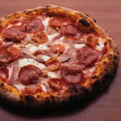 Queso mozzarella, salami, pepperoni, tocino, jamón y salsa pomodoro.