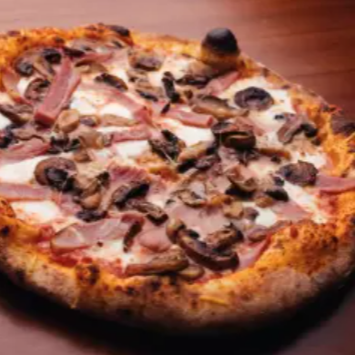 Queso mozzarella, salsa pomodoro, jamón y champiñón.