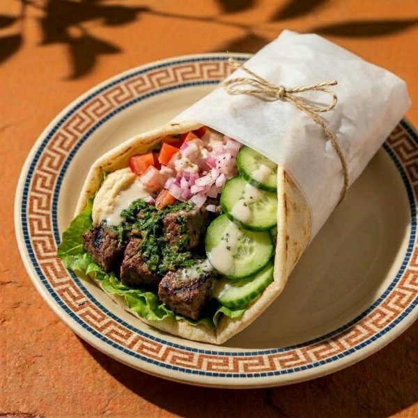 Pan pita, lechuga, arrachera con chimichurri, hummus de garbanzo, jitomate, pepino, cebolla morada y vinagreta libanesa. Incluye Salsa Peri Peri por separado.