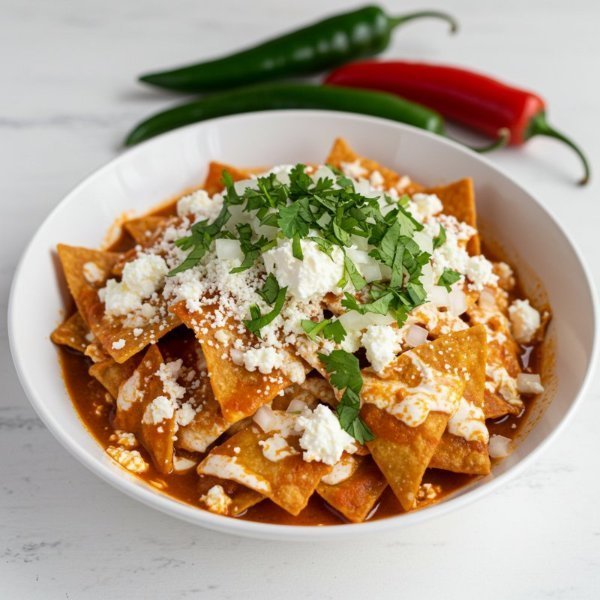 Orden de tres enchiladas rellenas de pollo deshebrado, bañadas en una deliciosa salsa roja y terminadas con crema, queso y cebolla fresca.