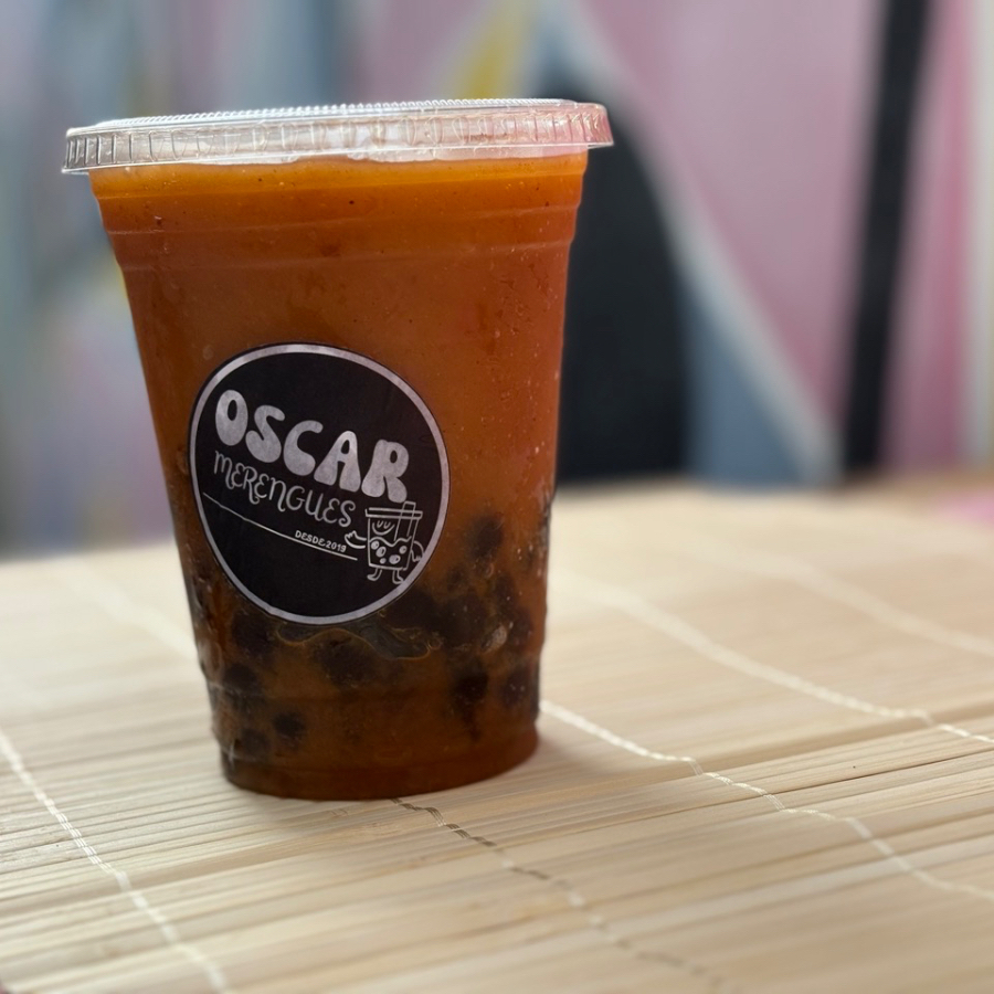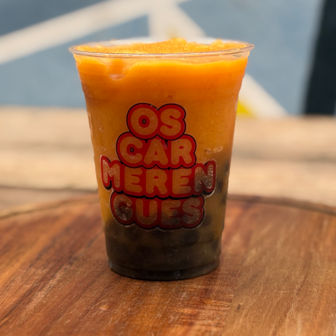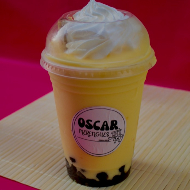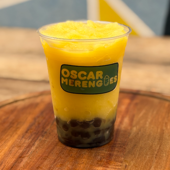 TE VERDE, MEZCLADO CON MANGO. VIENE CON CREMA BATIDA Y TAPIOCA
