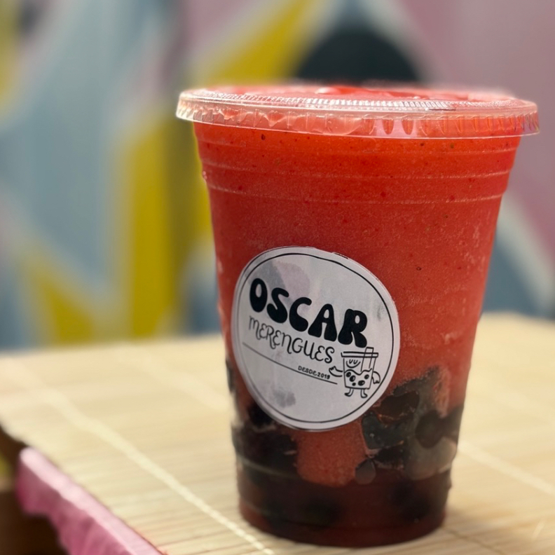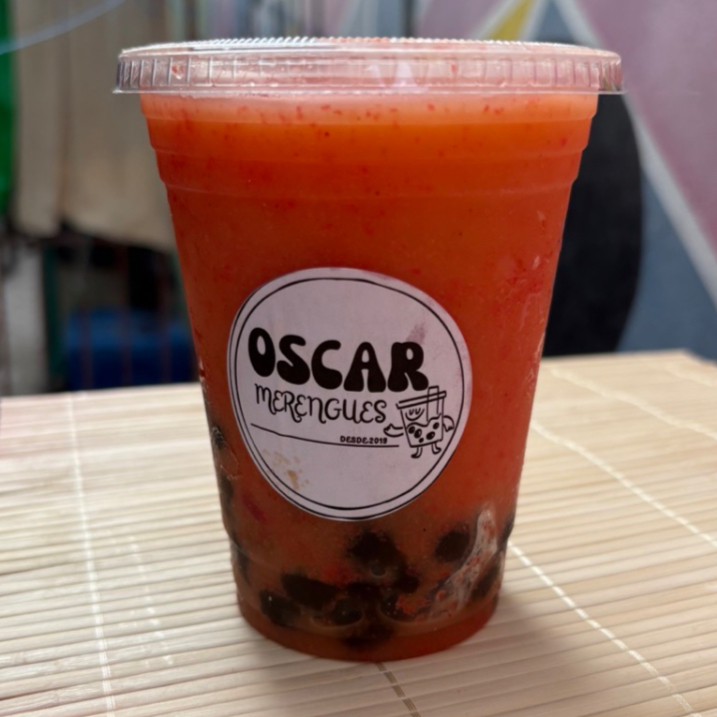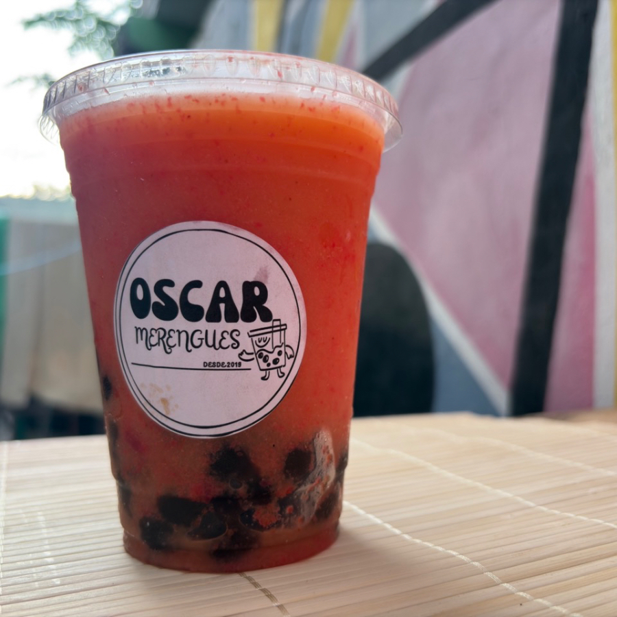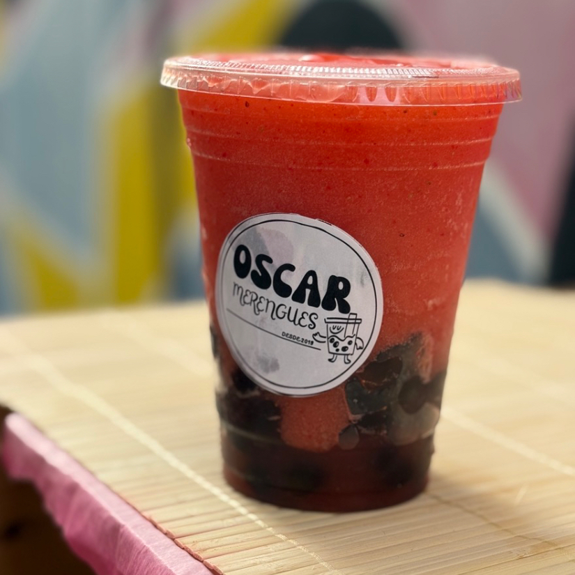 HIELO, JUGO DE FRESA Y FRESA NATURAL, ACOMPAÑADO CON TAPIOCA