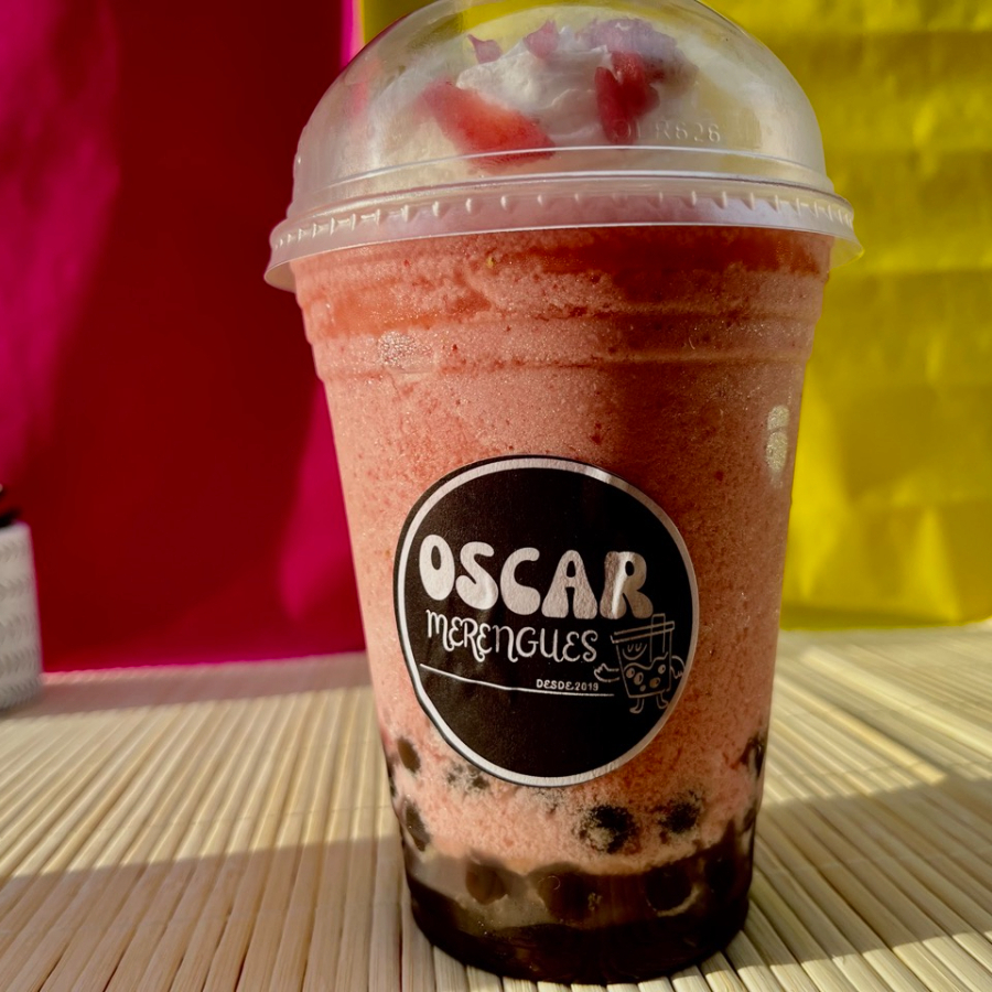 DELICIOSO FRAPPE CON FRESA NATURAL Y YOGURT DE FRESA, VIENE CON CREMA BATIDA Y TAPIOCA
