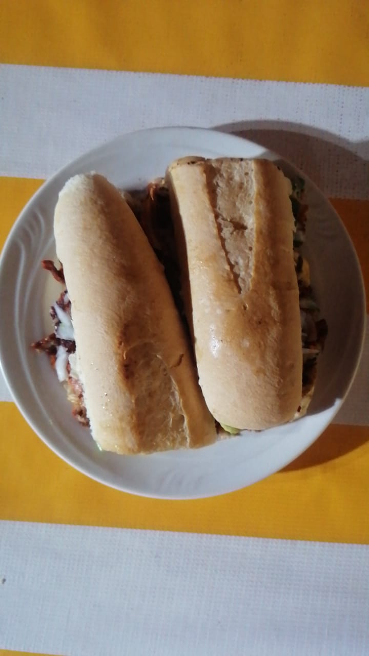 1 baguette rellena de pastor y queso gratinado.
